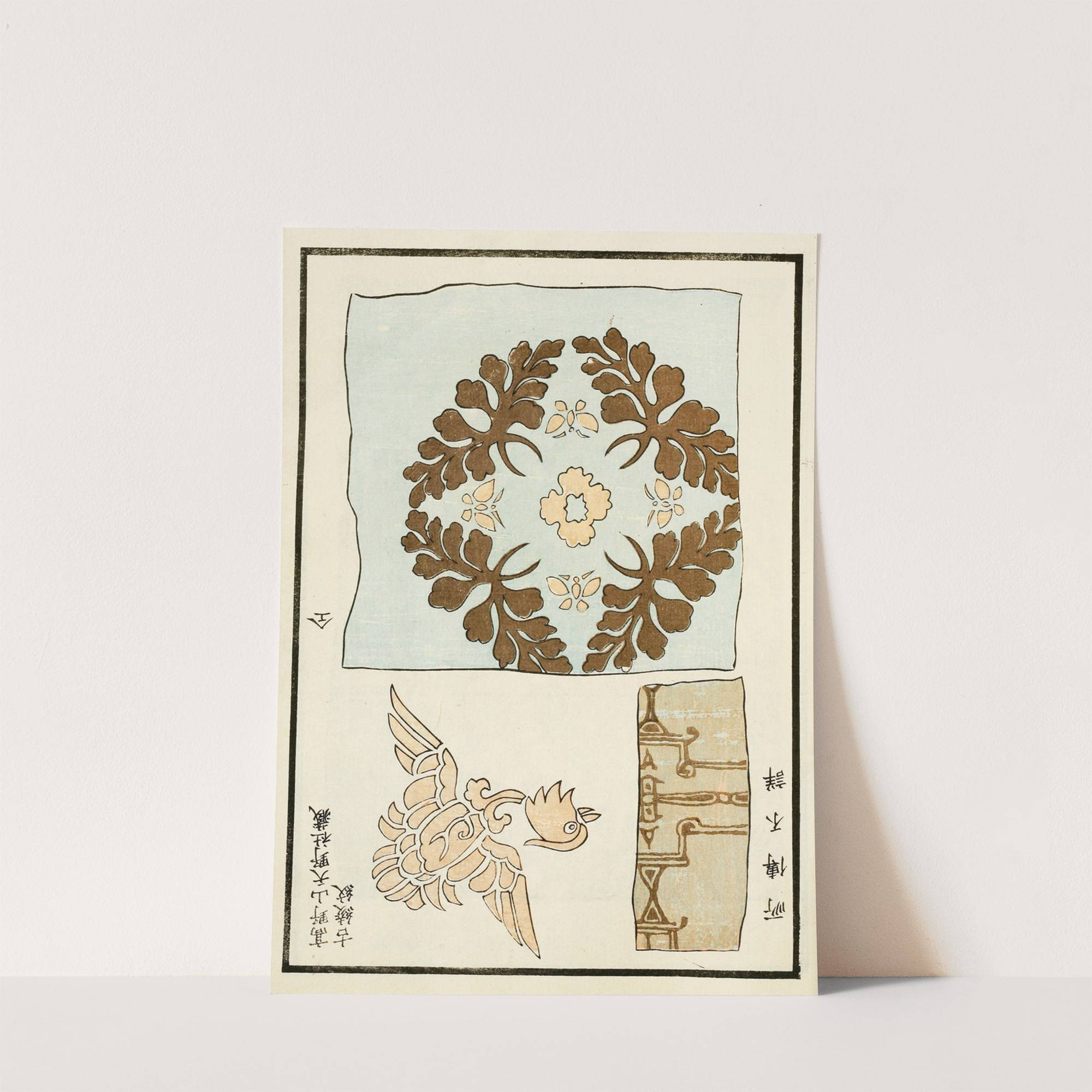 This beautifully crafted art print features intricate designs inspired by traditional Chinese aesthetics. The centerpiece of the composition is an elegant floral wreath in rich brown hues, with delicate leaves forming a circular pattern around a central cluster of small...