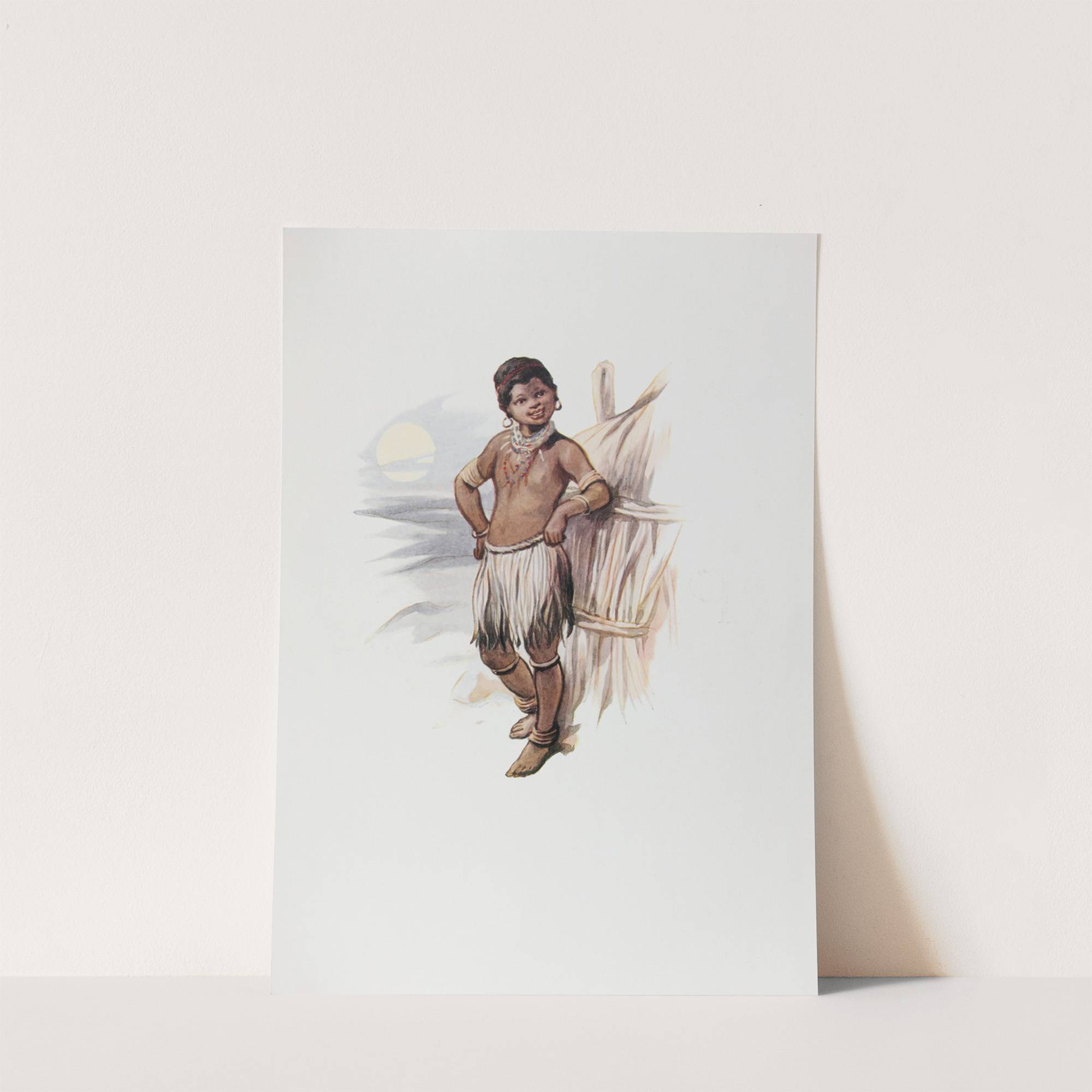 This art print showcases "Orange River Colony" by A.H. Collins, depicting a young boy standing confidently against a wooden fence in a rustic setting. The illustration is done with a mix of traditional and digital techniques, bringing a warm, nostalgic...