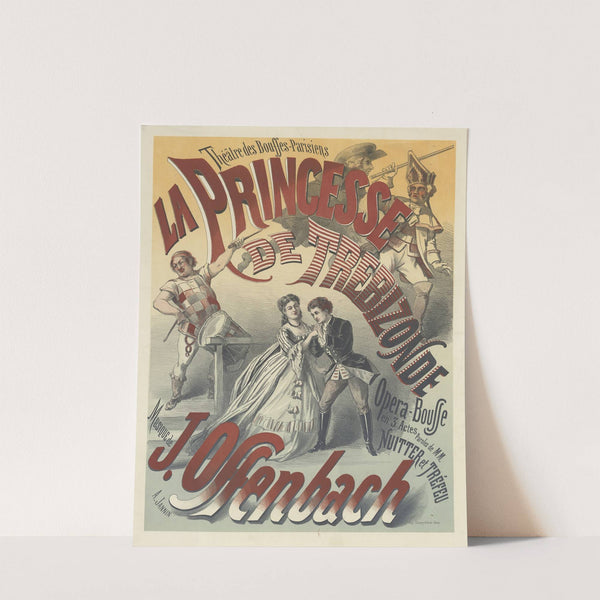 This art print is a captivating reproduction of the poster for "La Princesse de Trébizonde," an opéra-bouffe in three acts created by artist A. Jannin in 1870. The poster features an elaborate and vibrant design with a warm color palette...