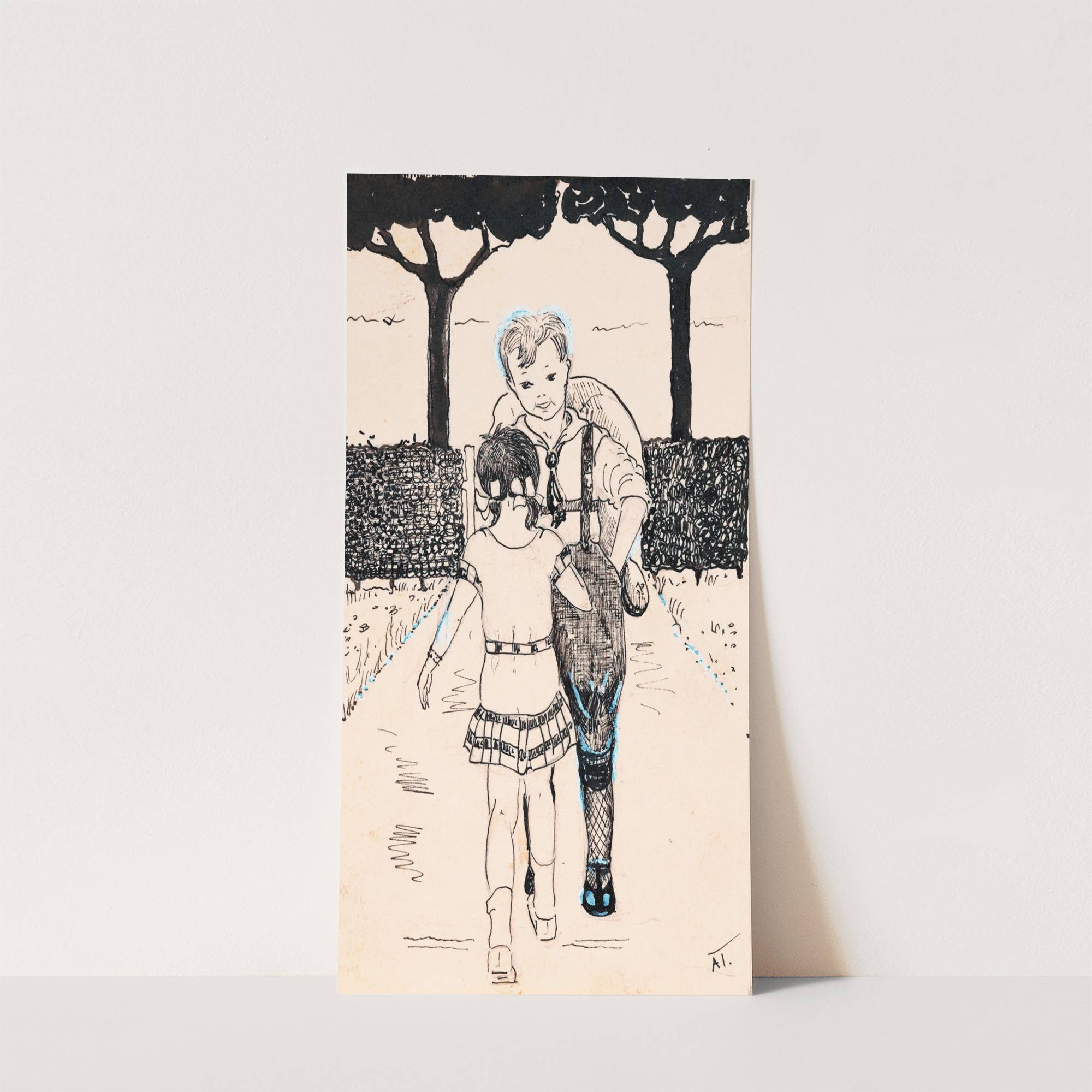 Jongen en meisje op een tuinpad by A. Tinbergen - Wall Art Print