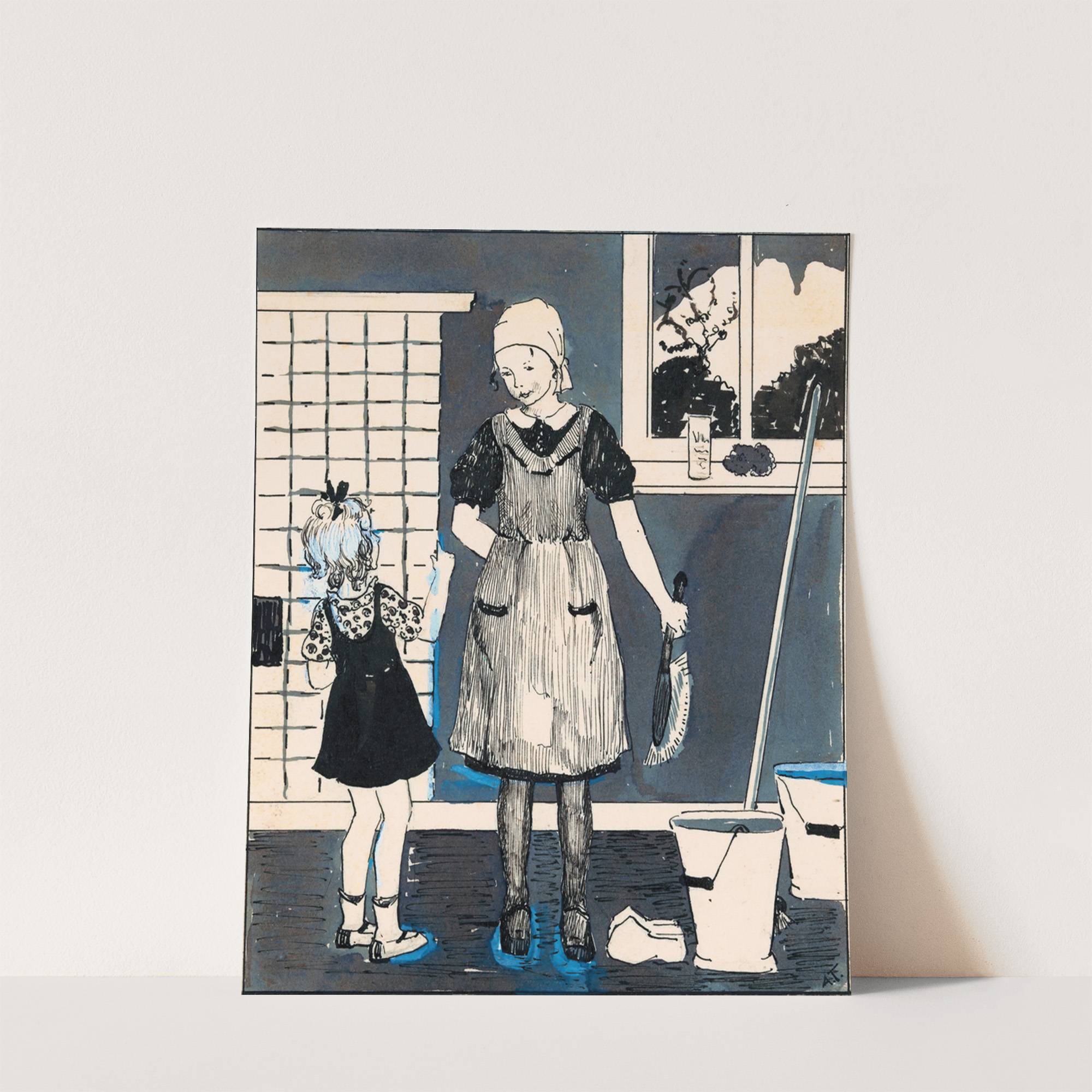 Jongen met kussens en deken in een tuin by A. Tinbergen - Wall Art Print