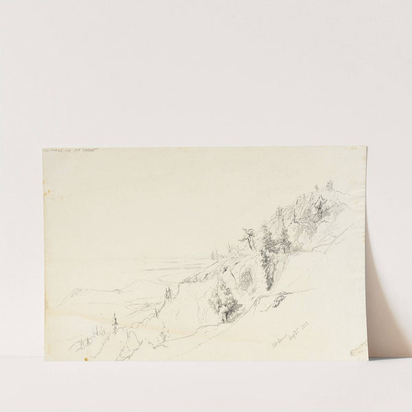 This art print features "Mount Desert" by Aaron Draper Shattuck, showcasing a minimalist yet striking composition. The central focus of the piece is a delicate arrangement of black line work set against an almost white background, creating a high-contrast effect...