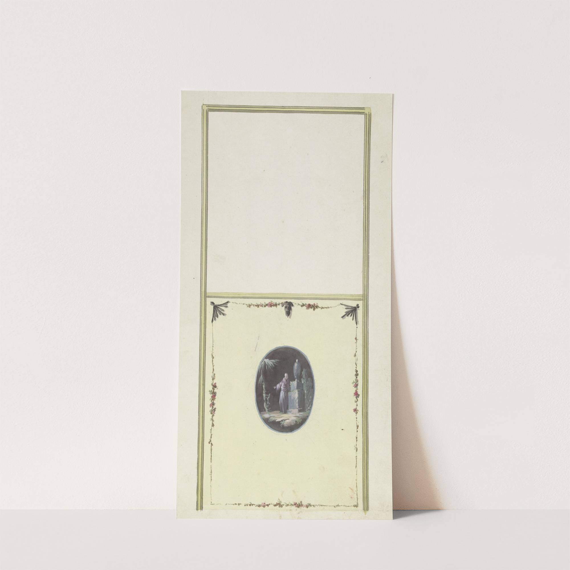 Ontwerp voor kamerversiering met verticaal twee panelen, de onderste met een chinoiserie