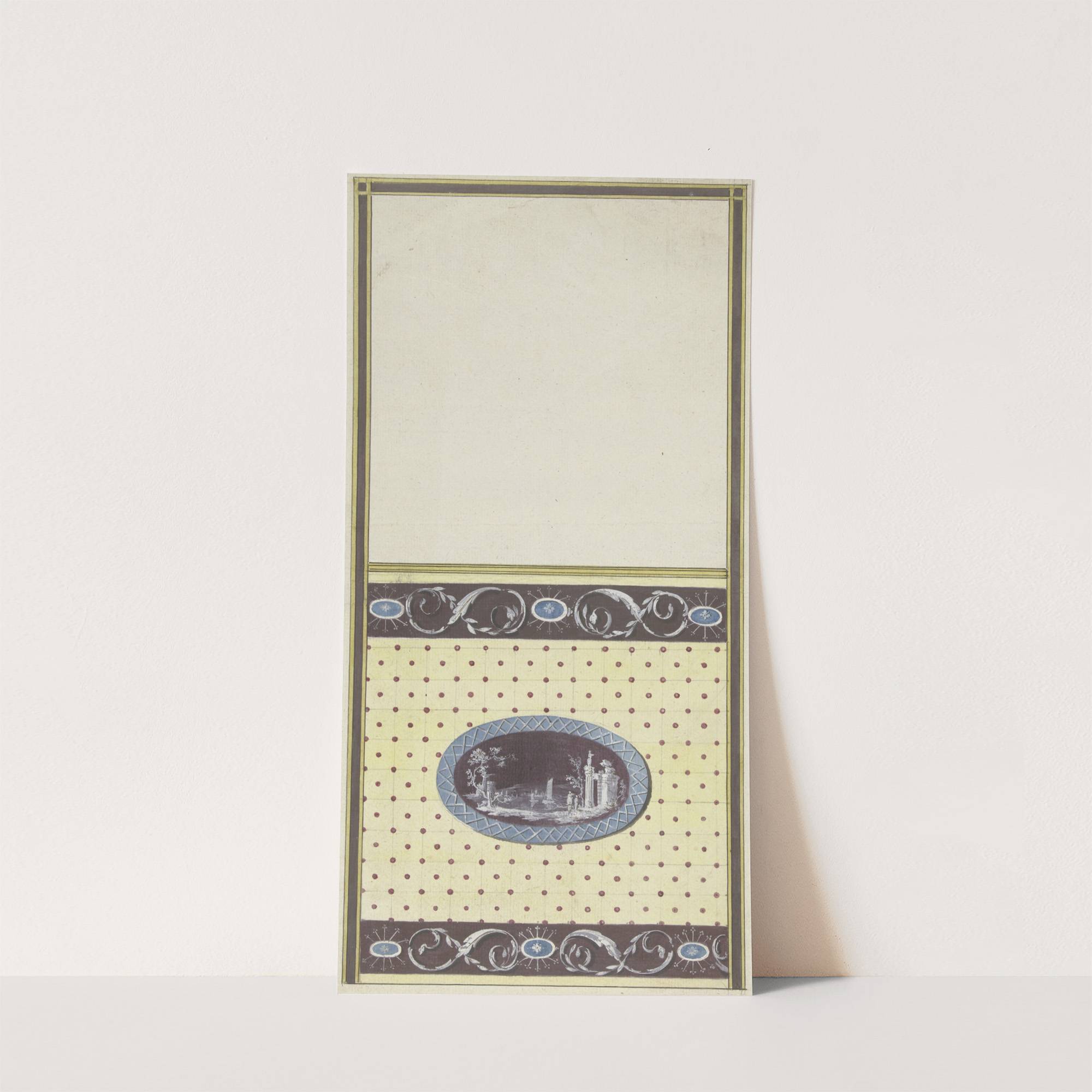Ontwerp voor kamerversiering met verticaal twee panelen, de onderste met een ruïnelandschap in een liggend ovaal