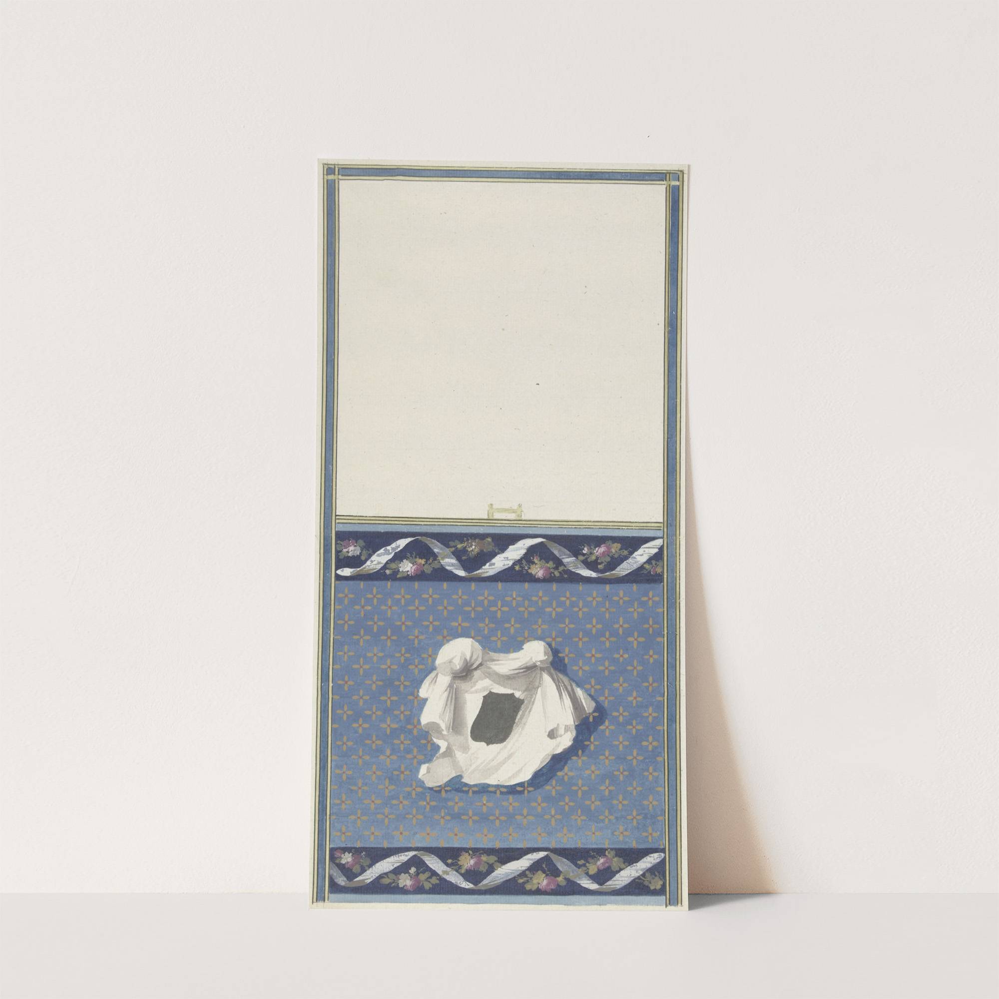 Ontwerp voor kamerversiering met verticaal twee panelen, de onderste met een witte doek op een sterrenfond