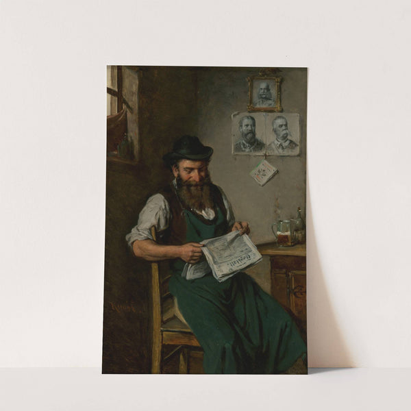 A tradesman reading a newspaper by Hermann Kern - Wall Art Print