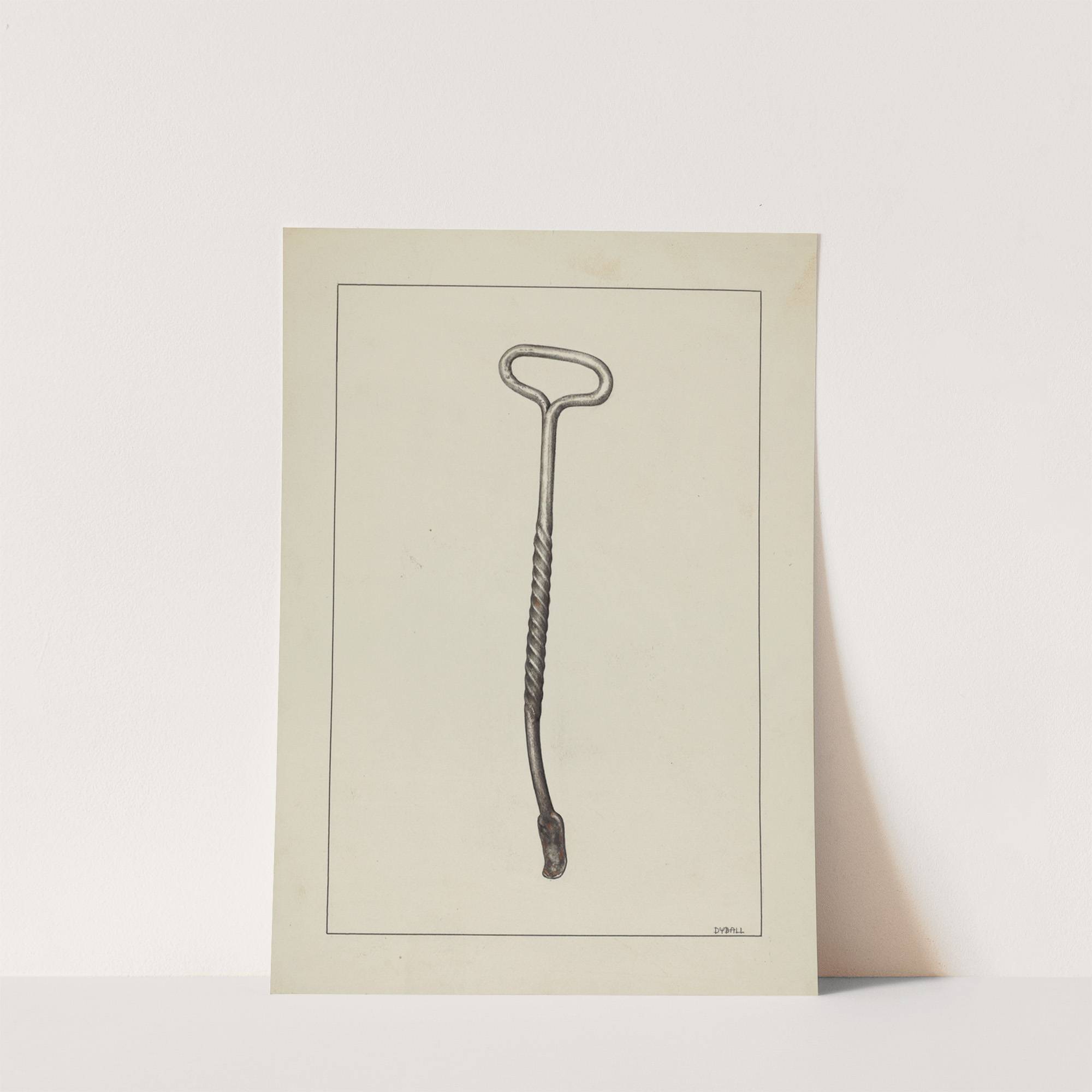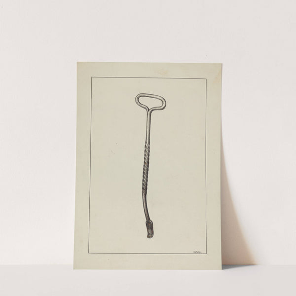 This art print showcases "Stove Lid Lifter" by Adelaide Dyball, a meticulous black-and-white illustration that captures the simplicity and functionality of a classic kitchen tool. The handle is depicted with textured shading to emphasize its ridged design, while the metal...
