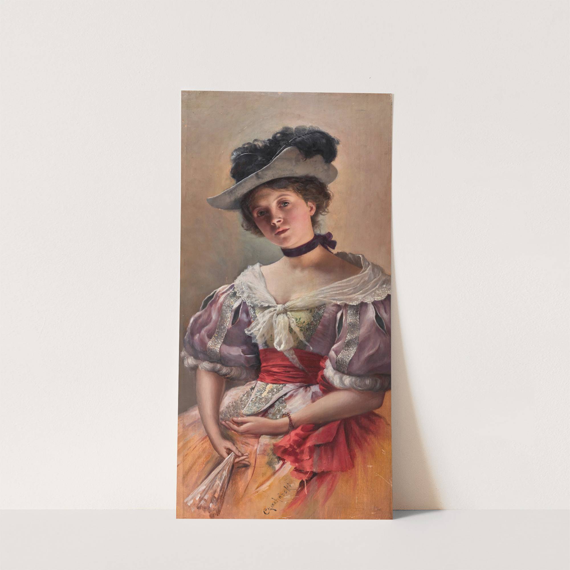 This exquisite art print features "Slimmer" by Adolf Humburg, a stunning portrait rendered in a classic realist style. The subject, a young woman with fair skin and delicate features, is depicted from the waist up. She has soft brown hair...