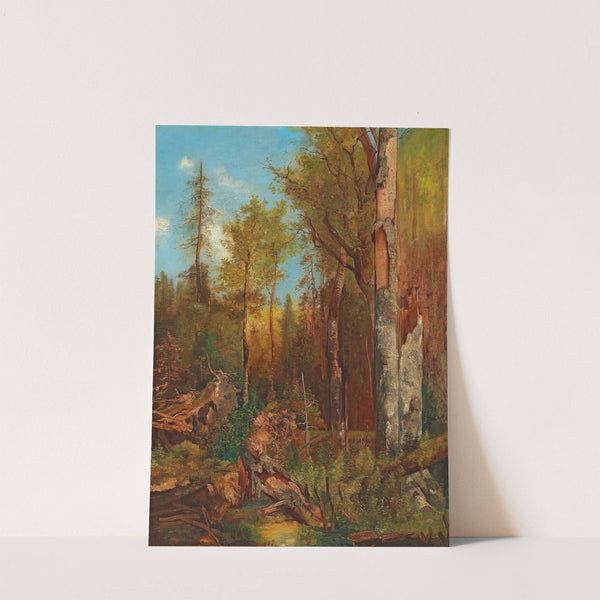 This stunning art print captures the tranquil beauty of a forest in autumn, titled "Aus den Forsten des Fürsten Schwarzenberg" by Adolf Obermüllner. The rich tapestry of colors includes vibrant greens and oranges, with sunlight filtering through tall trees, creating...