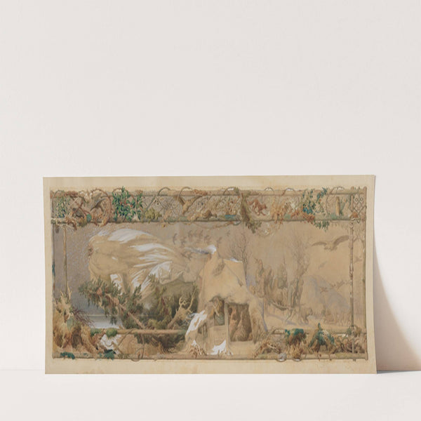 This art print features "Jahreszeitenzyklus; Der Winter" by Adolf Schröter, capturing the serene beauty of winter landscapes in a detailed watercolor style. The scene depicts a gently rolling countryside with subtle snow patches dotting the brown and beige earth, highlighting...