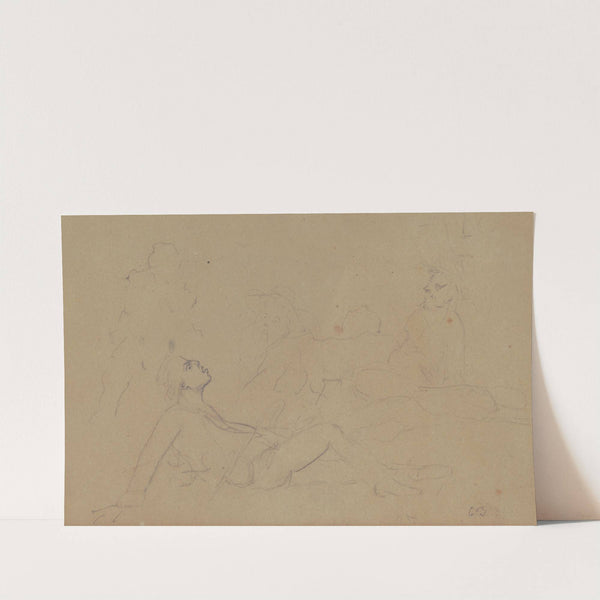 This art print features "After the Battle, 1863" by Adolph Metzner, created in a delicate pencil drawing style on textured beige paper. The composition showcases several figures loosely outlined with fine, almost transparent lines that capture a sense of movement...