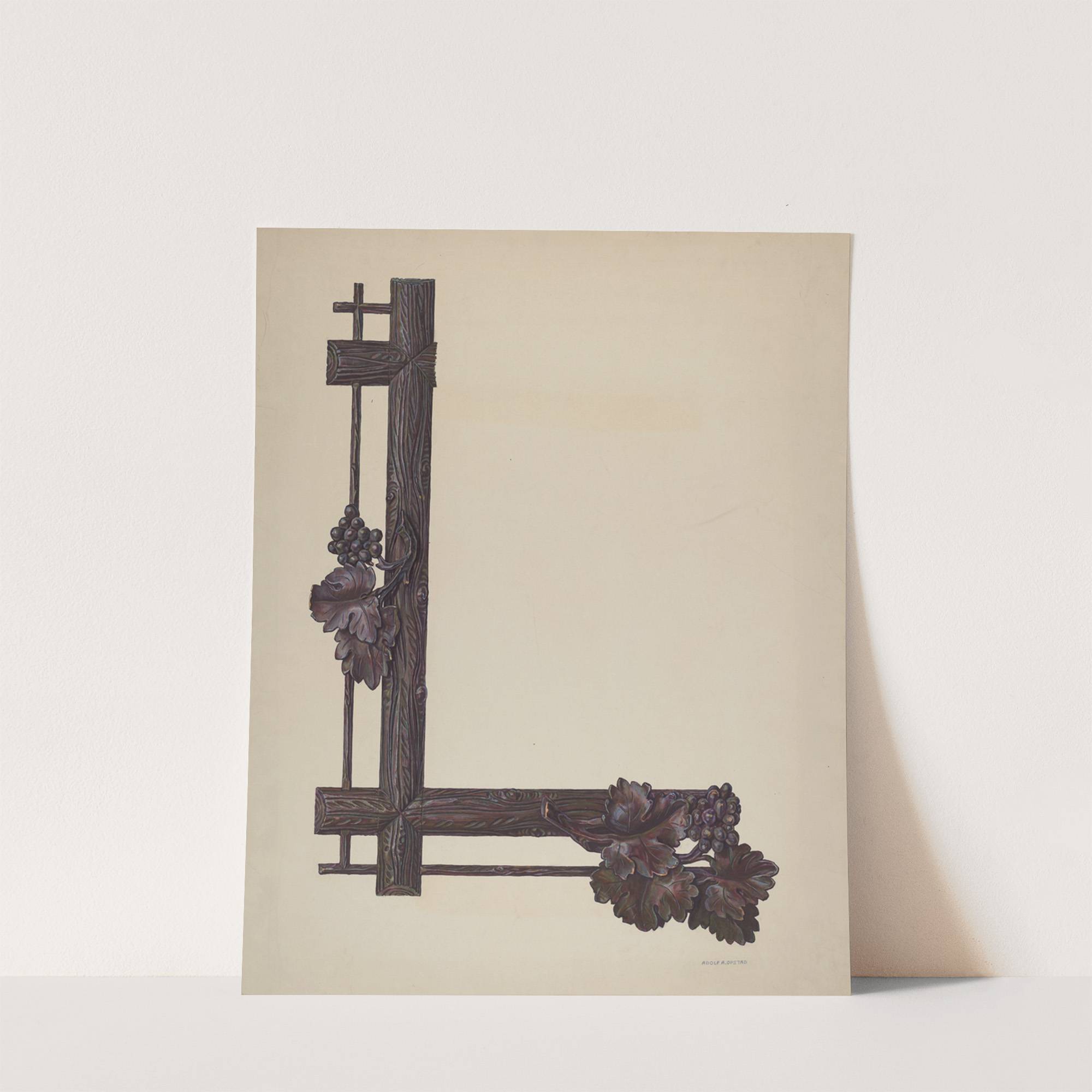 This elegant art print features "Carved Picture Frame" by the talented artist Adolph Opstad. The composition is striking, combining intricate wood carving elements with rich botanical details. A dark, textured wooden frame is the central focus of this piece, meticulously...