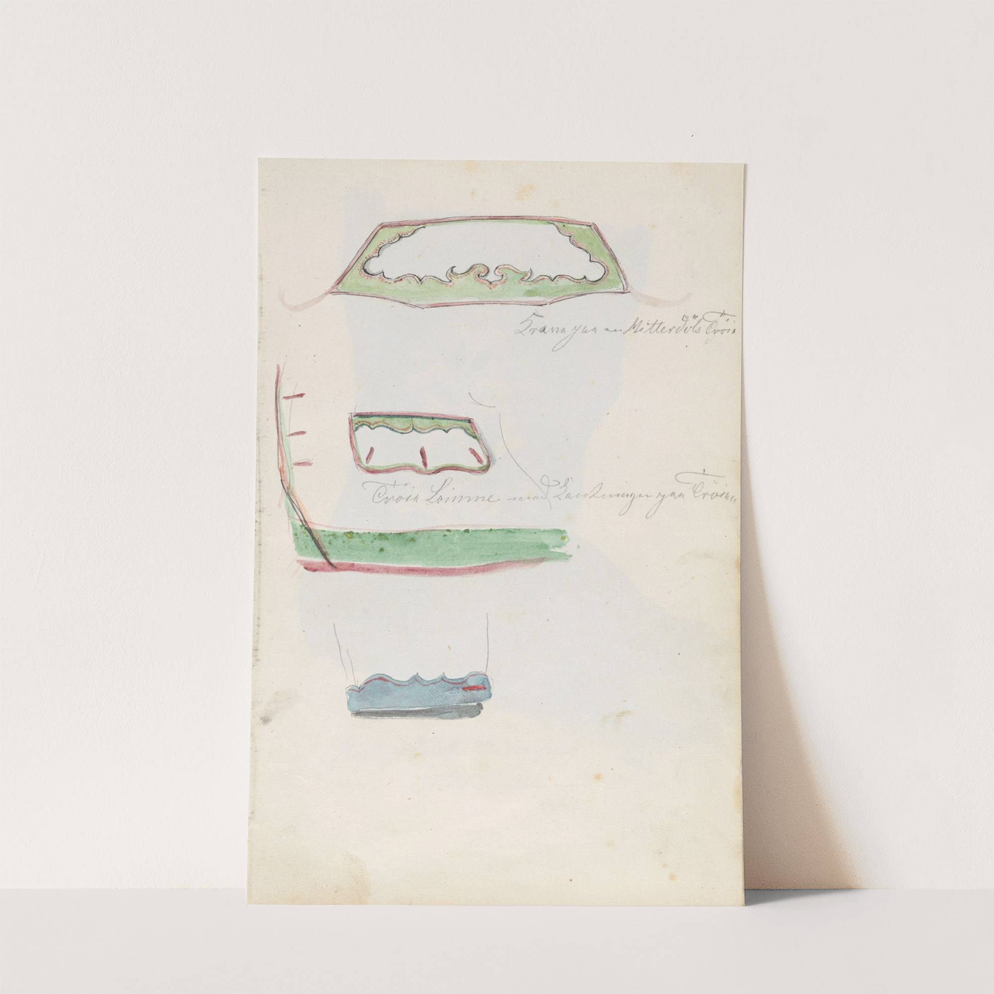 This artwork is a charming, hand-drawn illustration titled "Detaljer av mannstrøye fra Heddal" by the artist Adolph Tidemand, created in 1844. The piece features a delicate and whimsical style with a mix of watercolor and pencil on white paper. The...