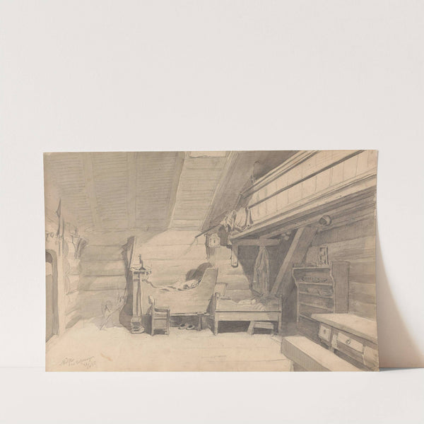 This charming monochromatic drawing depicts a cozy wooden cabin interior, evoking a sense of rustic warmth and simplicity. The artist expertly uses soft shading and fine pencil lines to create a realistic yet whimsical scene. In the foreground, an inviting...