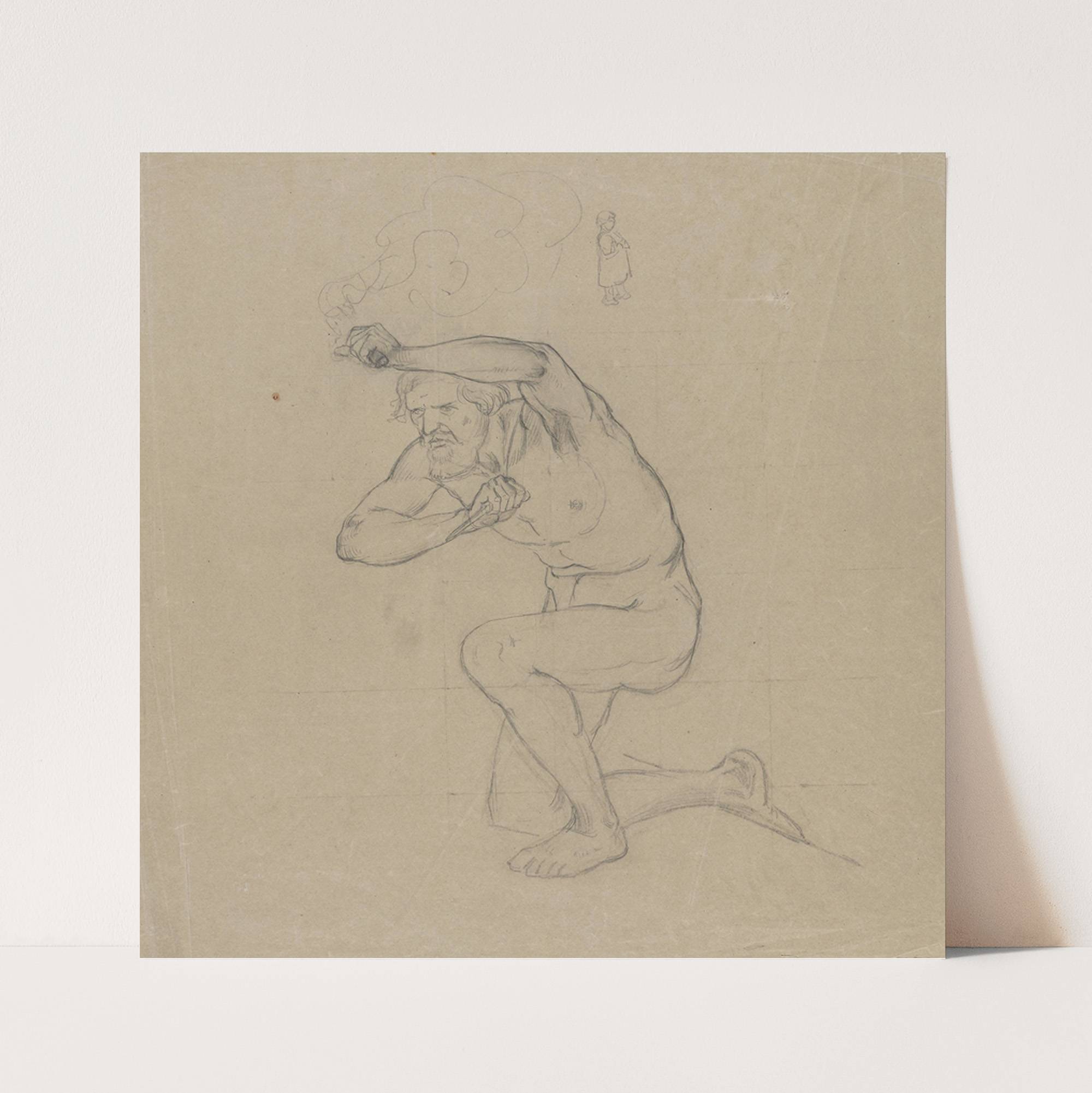 This black-and-white pencil sketch captures the raw intensity of a muscular male figure in mid-motion, poised as if preparing to strike or defend himself. The subject is drawn with meticulous attention to detail, showcasing his defined muscles and a pronounced...