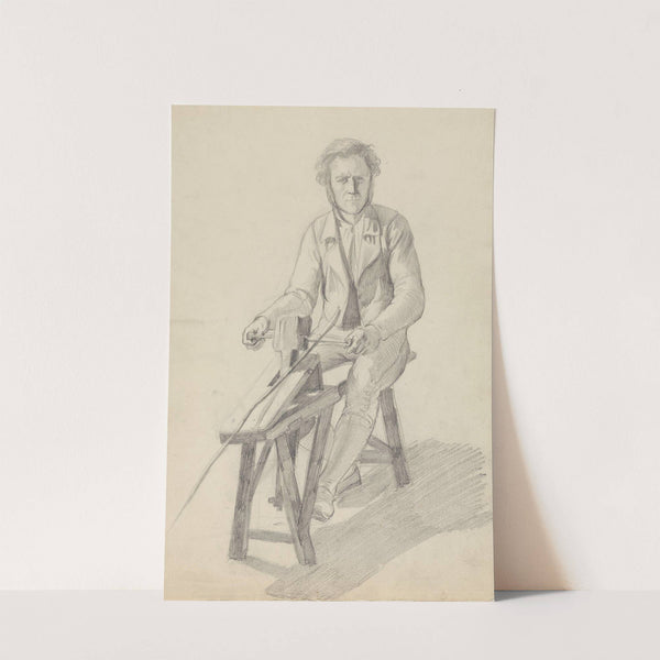 This intricate pencil drawing captures the likeness of Adolph Tidemand seated at his easel. The artist skillfully renders the subject with delicate shading and fine lines, highlighting the subtle textures in his clothing and hair. Tidemand is depicted wearing a...