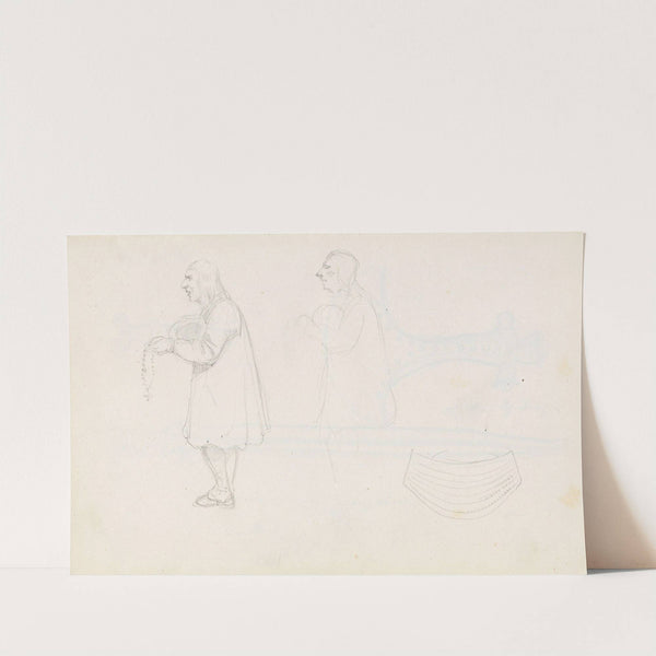 Studier av mannsfigur med rosenkrans; bronsealdersmykke (1844-1854)