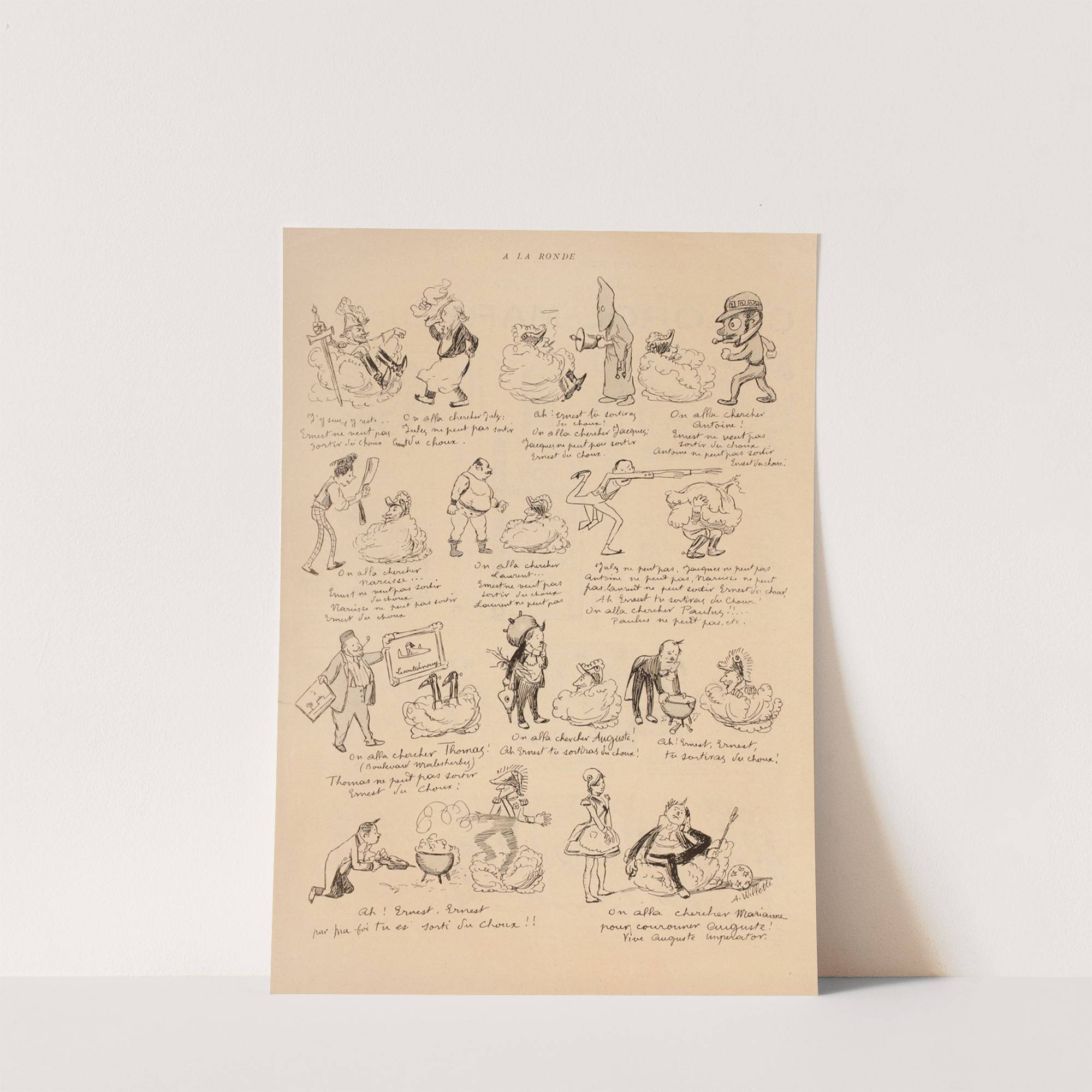 This charming illustration features a series of black-and-white line drawings with delicate, whimsical detailing. Each scene depicts anthropomorphic animals interacting in various social situations, reminiscent of classic cartoons or children's books. The artist skillfully uses thin lines to create detailed...