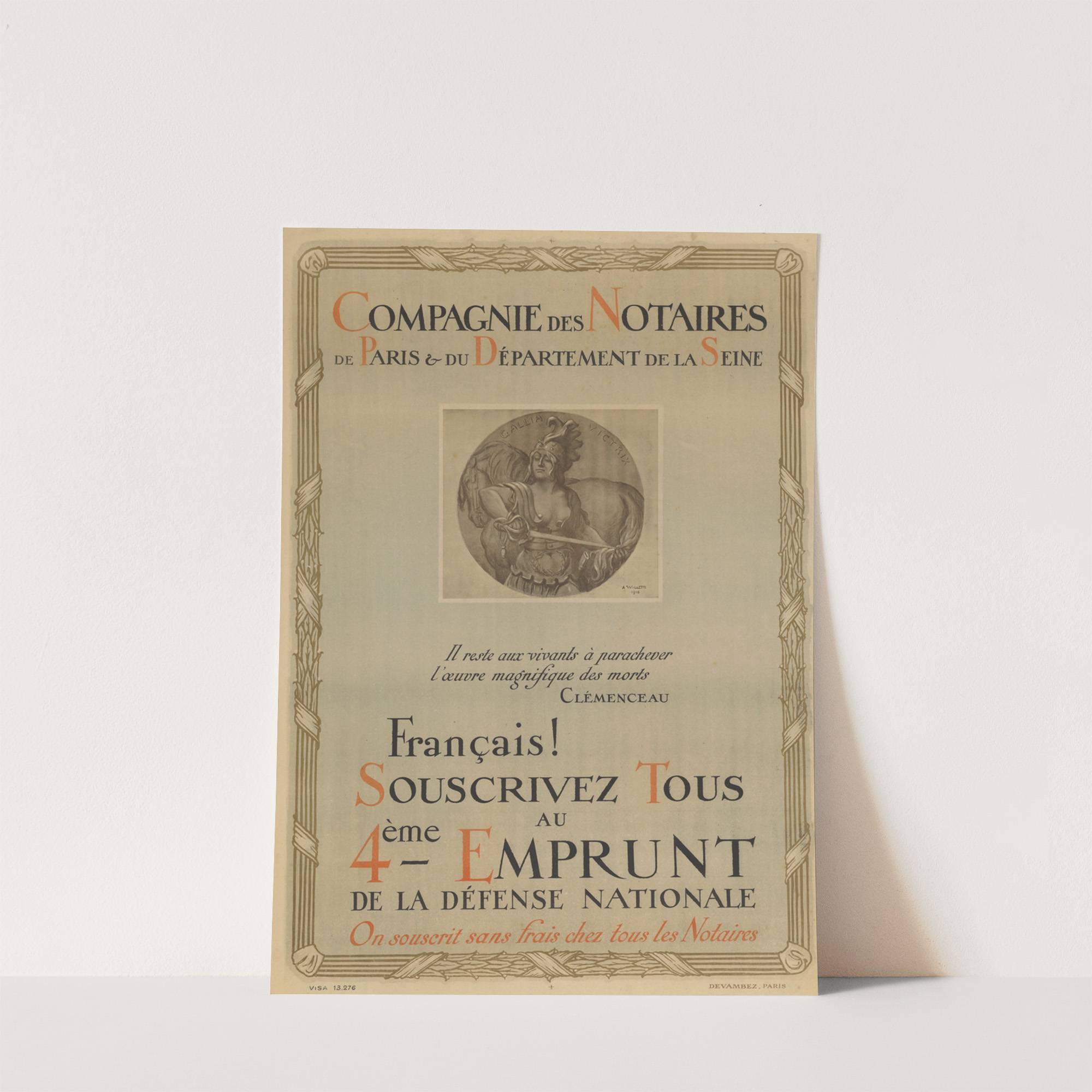 Compagnie des notaires de Paris et du département de la Seine. Français ! Souscrivez tous au 4ème Emprunt de la Défense nationale (1918)