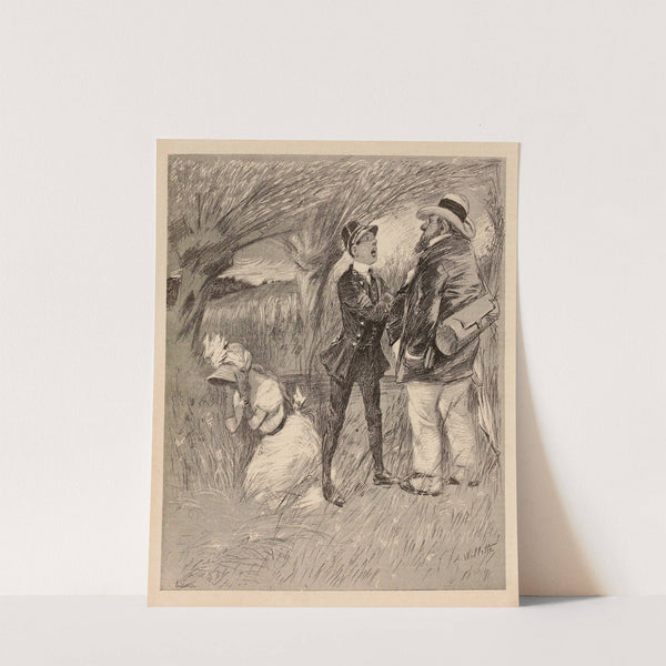 Experience the charm of late 19th century rural life with "Vive les Vacances, M'sieur!" by Adolphe Léon Willette. This black and white art print beautifully captures a serene countryside scene with a delicate blend of monochromatic tones.In the foreground, two...