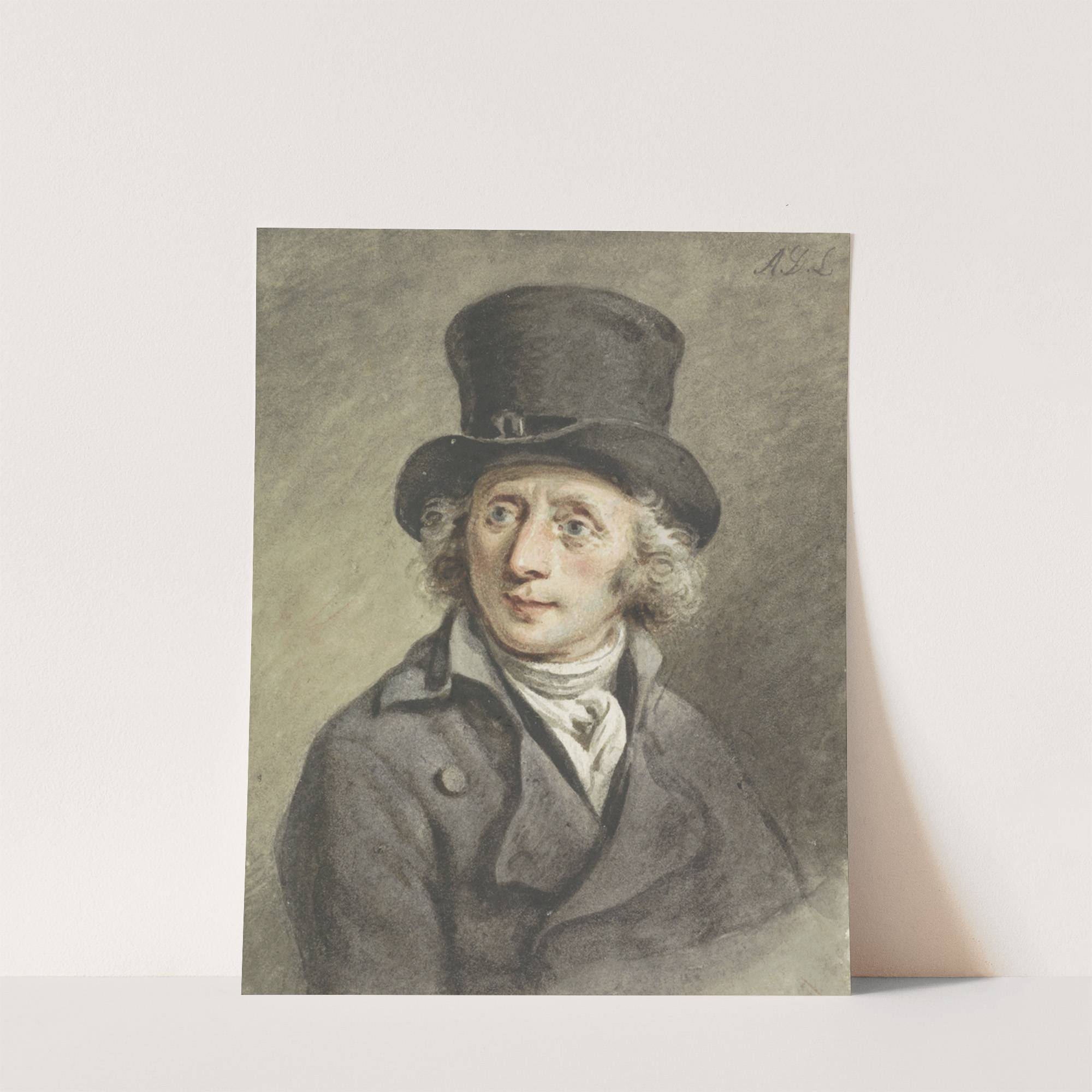 This elegant portrait features "Zelfportret" by Adriaan de Lelie, showcasing a classic 18th-century style with meticulous detail. The subject is a man of gentle demeanor, gazing slightly to his left with a soft expression on his face. His light hair...