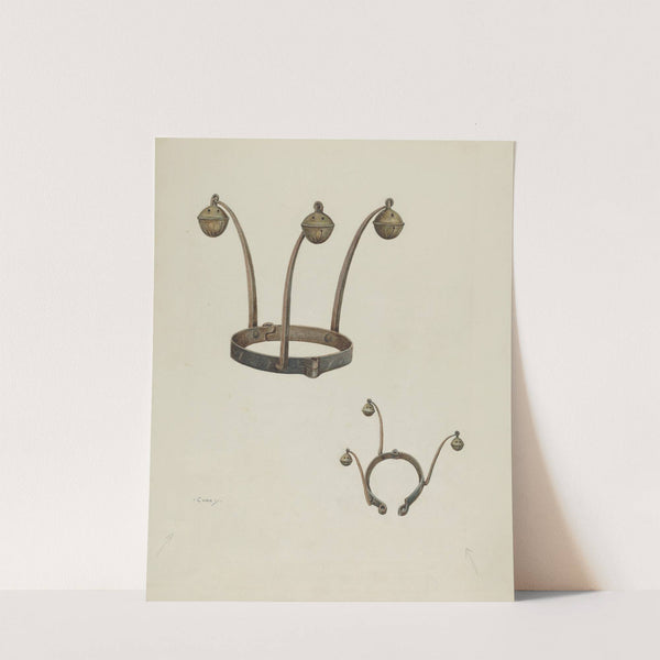This exquisite piece of jewelry art is titled "Slave Collar" by Al Curry. The design features two elegant brass arcs that rise from the base of an open-work band, each terminating in a small, intricate lampshade-like ornament with delicate grooves...