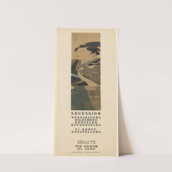 This art print features a vertical composition of an exquisite ukiyo-e woodblock print titled "Spiegelsezione verl?ngerte Versuchung des Gatsbys und seine Absetzung" by the renowned artist Albert Berger. The image captures a delicately composed figure in traditional Japanese attire, with...