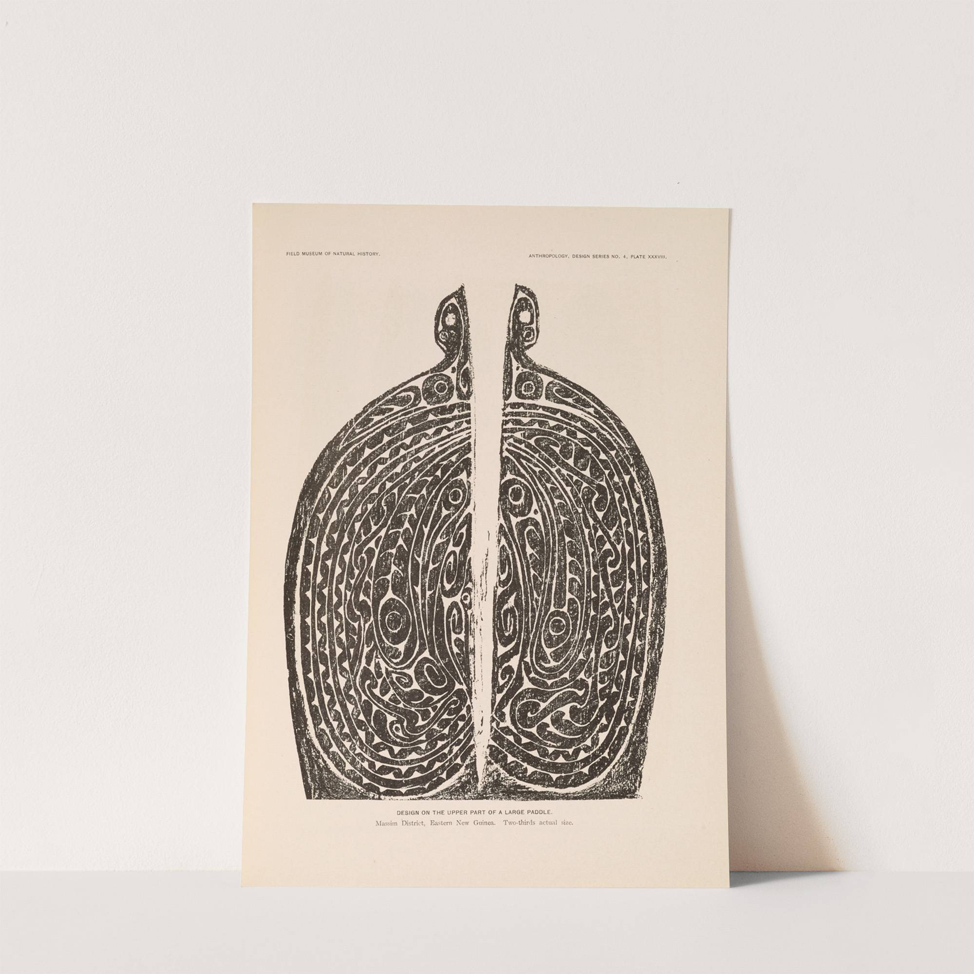 This striking print features "Decorative Art of New Guinea Pl.32" by renowned artist Albert Buell Lewis. The artwork showcases an intricately detailed black and white design that captures the rich cultural patterns found in New Guinean artistry. The symmetrical composition...