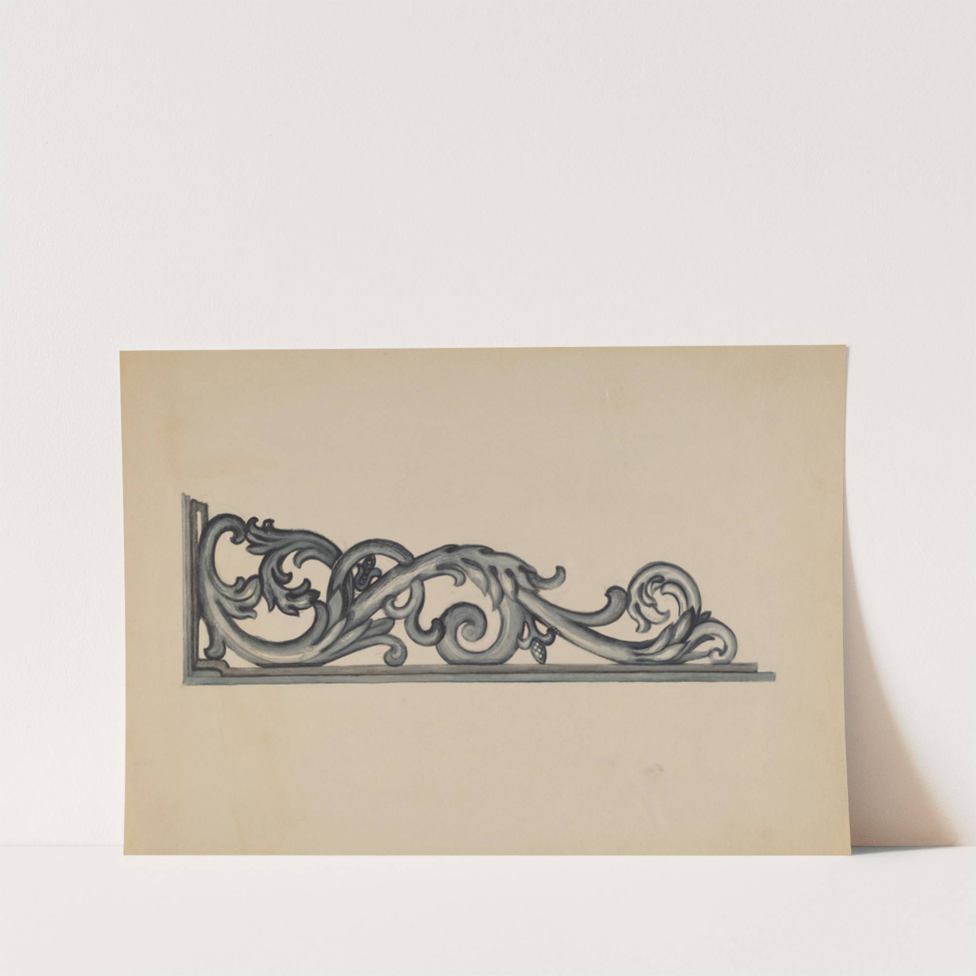 Introducing "Iron Bracket" by Albert Eyth, a stunning piece of decorative art that showcases intricate ironwork design. This elegant illustration features a horizontal band adorned with elaborate, swirling patterns and motifs reminiscent of Victorian-era metalwork. The detailed scrollwork is rendered...