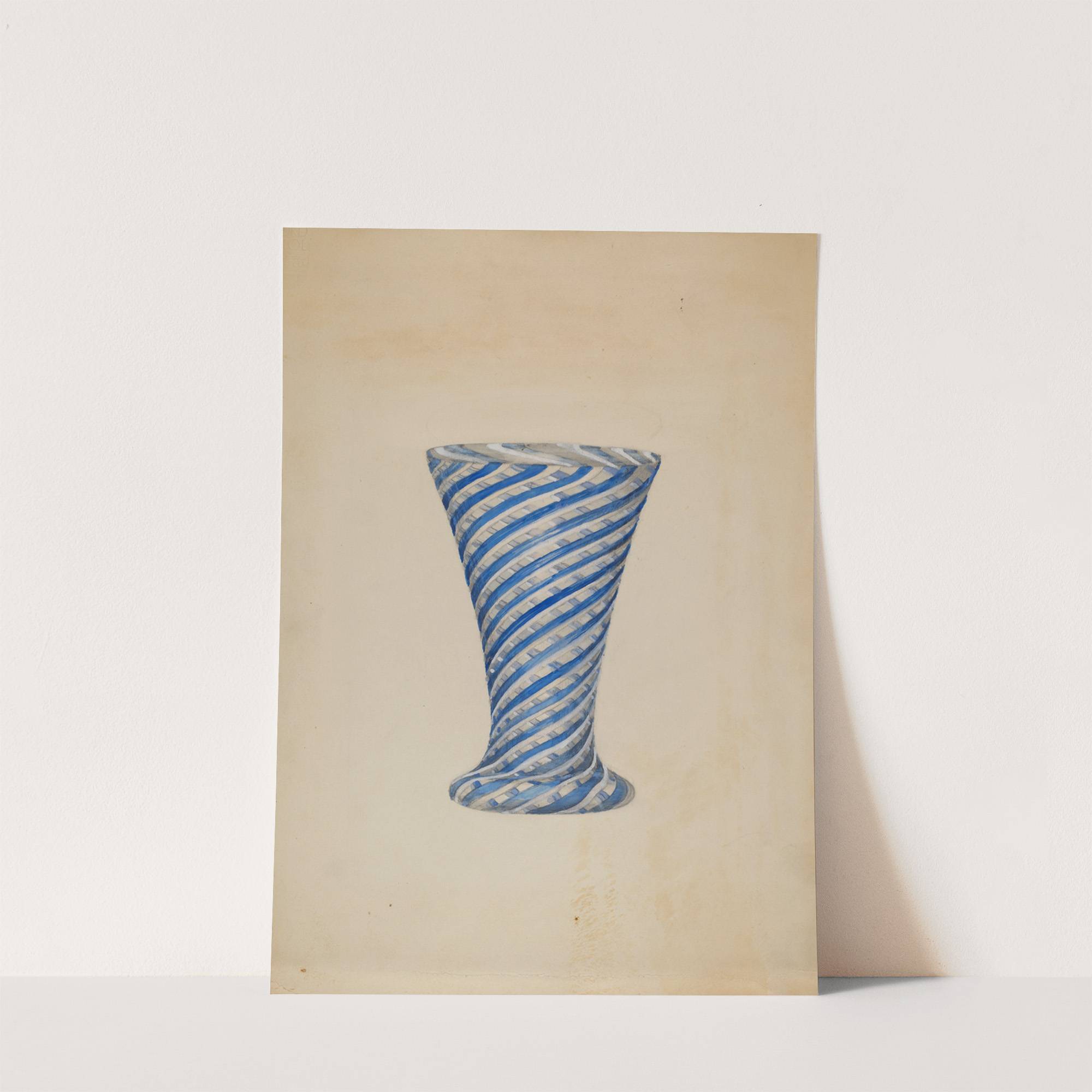 This elegant art print features "Vase (Blue and White)" by artist Albert Ehrhardt, showcasing a beautifully crafted vase in a vibrant style. The vase stands tall with a graceful, tapered form that flares out at the top, creating an eye-catching...