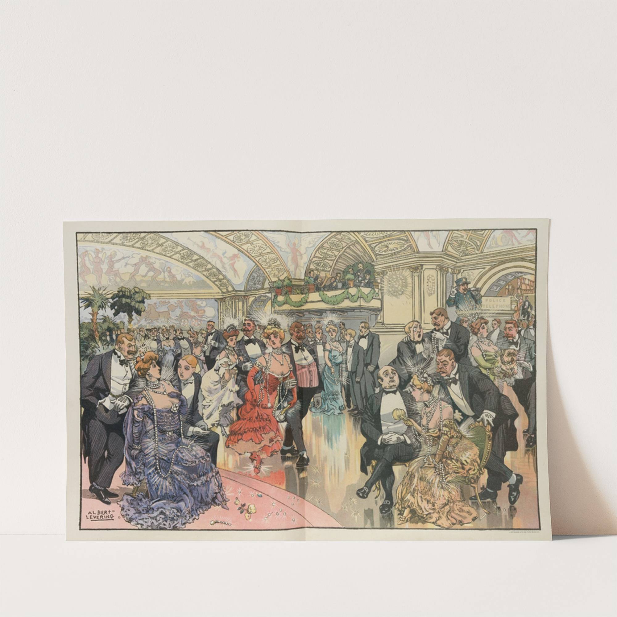This vibrant art print, "The Diversions of High Society" by Albert Levering, captures the essence of an elegant Victorian-era social gathering. The scene is filled with intricately dressed individuals engaged in lively conversations and dancing. In the foreground, a young...