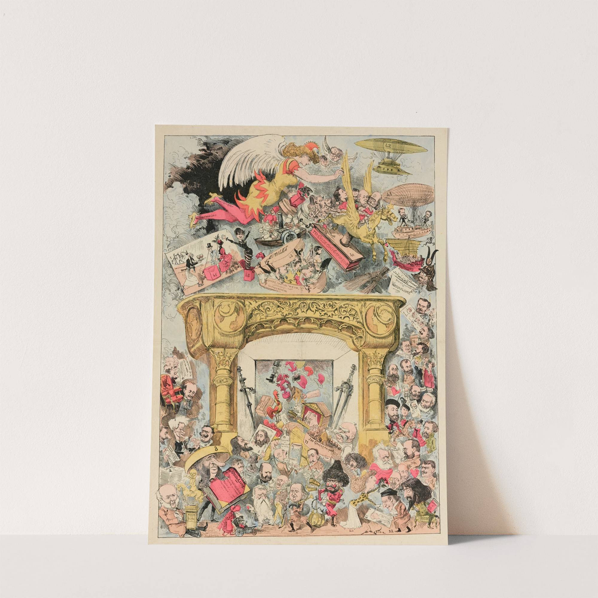 Supplément pour La Caricature, n° 261, 27 décembre 1884 is an intricately detailed caricature by the renowned French artist Albert Robida. This vibrant piece showcases a chaotic and humorous scene bursting with activity and personality. At its center stands an...