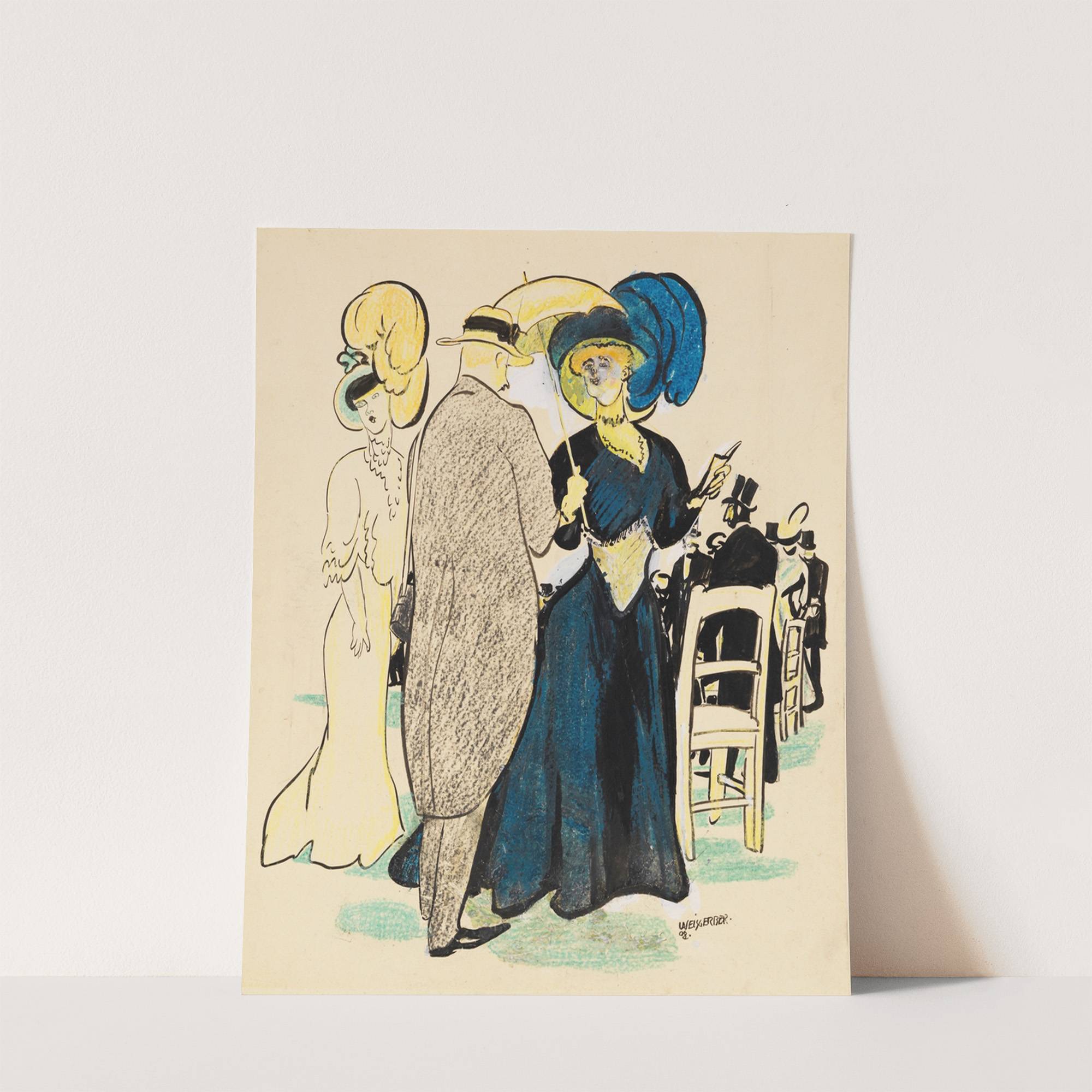 Experience the elegant charm of "Feine Gesellschaft" by Albert Weisgerber with this stunning art print. This piece captures a sophisticated social gathering in a classic, vintage style. The central figure is a stylish woman adorned in a flowing black dress...