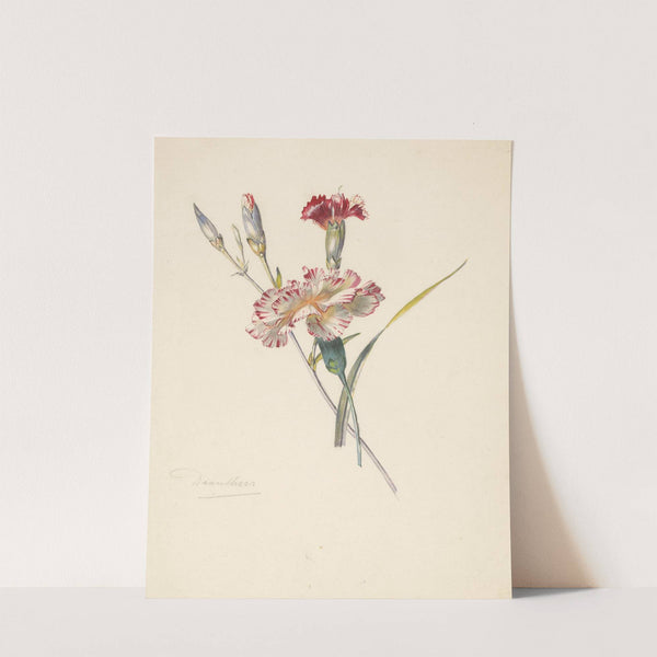 Presenting "Studieblad met Anjers" by Albertus Steenbergen—a delicate watercolor masterpiece that captures the essence of spring. This exquisite artwork features a bouquet of pink anemones, their petals tinged with red and white, creating a beautiful contrast against a clean, white...