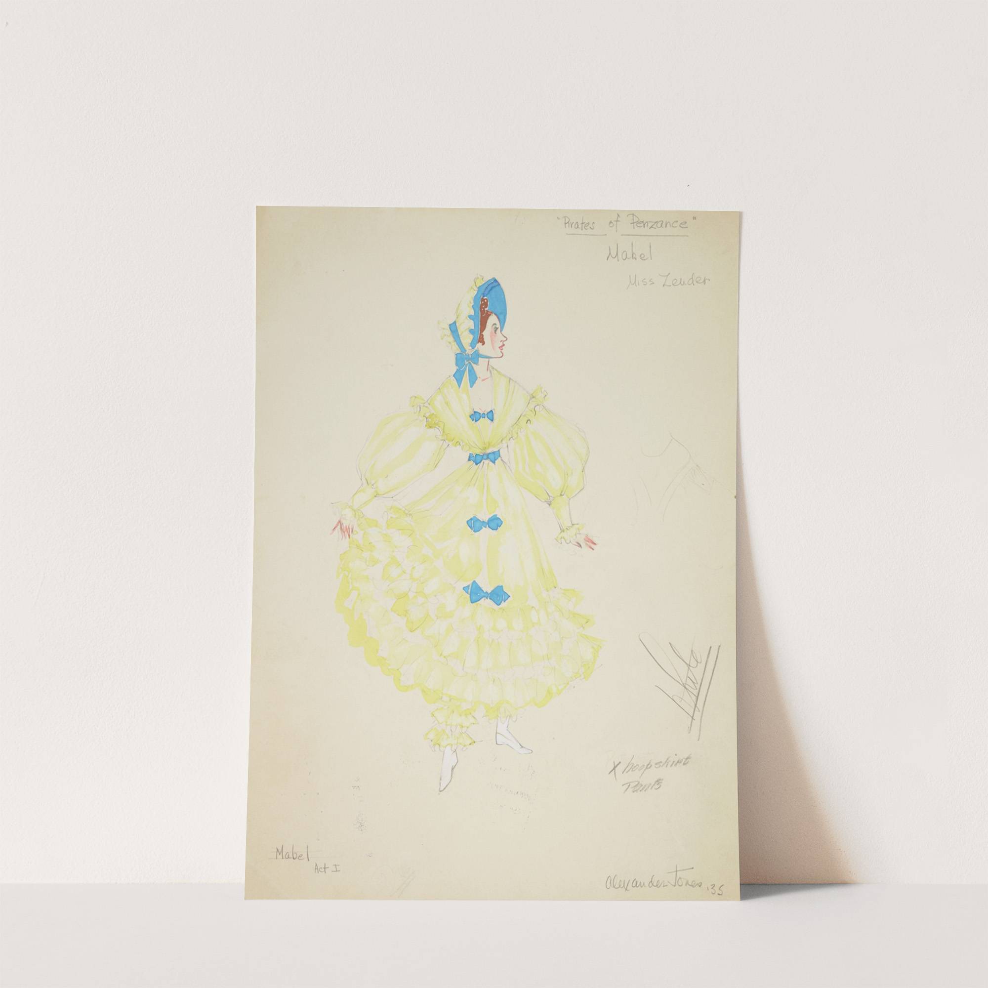 Introducing "Pirates of Penzance: Mabel" by artist Alex Jones – a vibrant and charming illustration that captures the essence of this beloved musical character. This piece features Mabel, depicted in her iconic yellow ball gown adorned with blue bows. The...