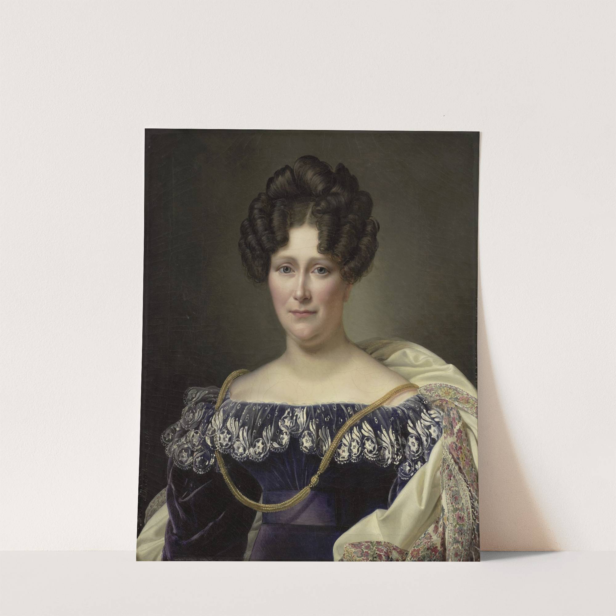 This exquisite art print features "Second Wife of Daniel Francis Schas" by the renowned artist Johanna Henriette Engelen, painted in the 19th century. The portrait showcases a woman with soft, fair skin and dark brown hair elegantly styled into intricate...