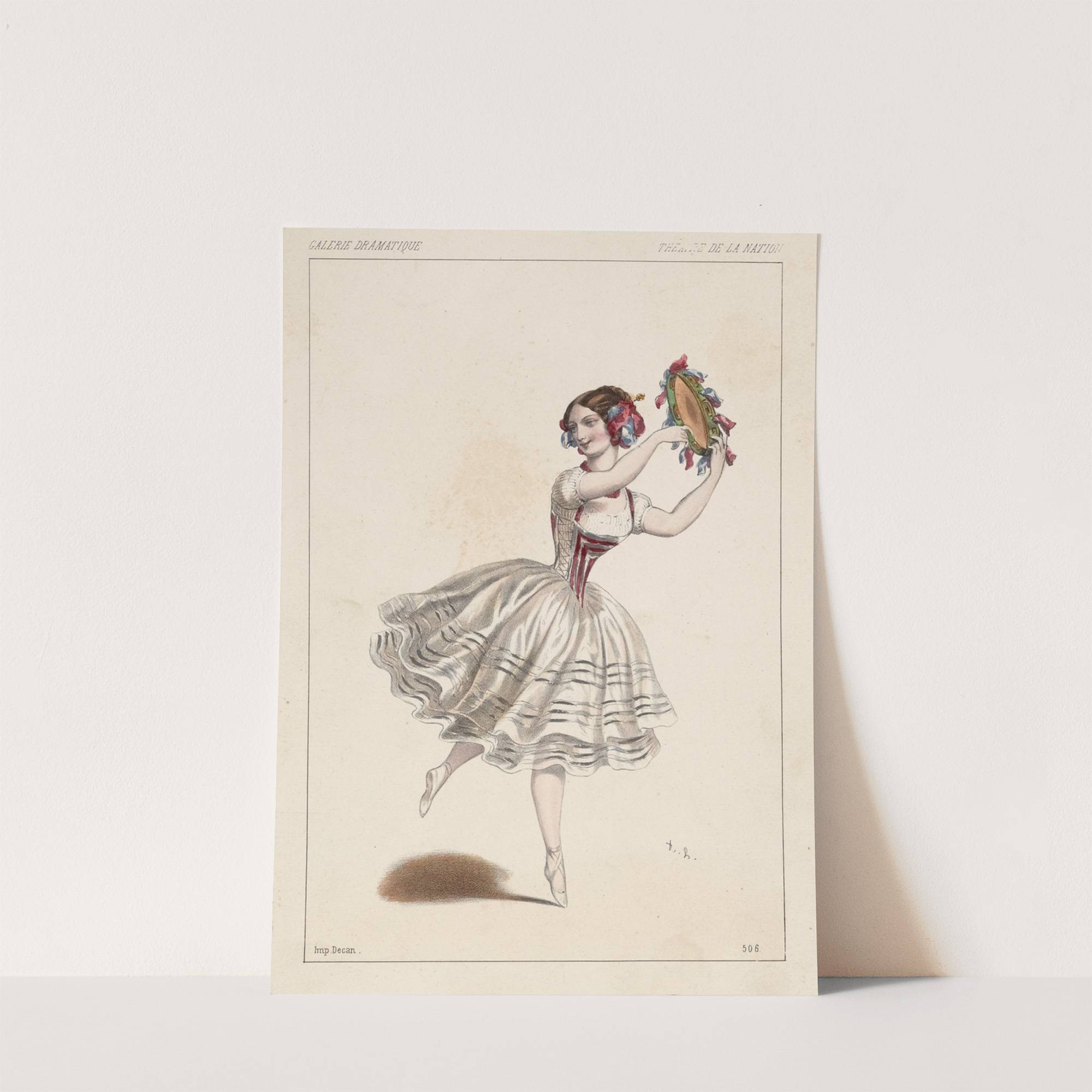 This art print showcases the elegant portrayal of "Stella" in "Rôle de Stella, 2e tableau" by Alexandre Lacauchie. The digital illustration captures a graceful ballerina mid-leap, exuding vitality and movement. She is adorned in an exquisite white ballet dress with...
