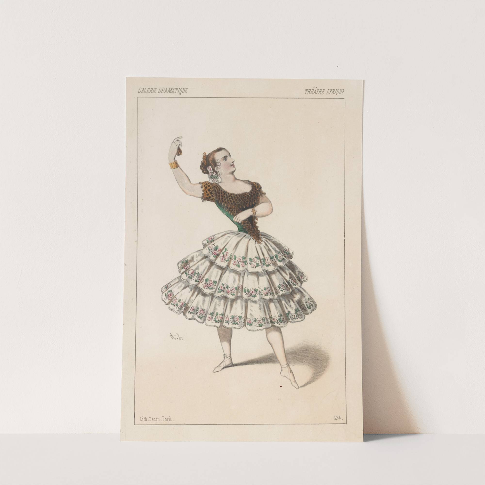 This elegant art print features Madame Guy Stephan in her role as Katty from "Le lutin de la vallée" by Alexandre Lacauchie. The illustration showcases a refined ballet dancer mid-performance, with graceful poses and poised elegance. Her attire is a...