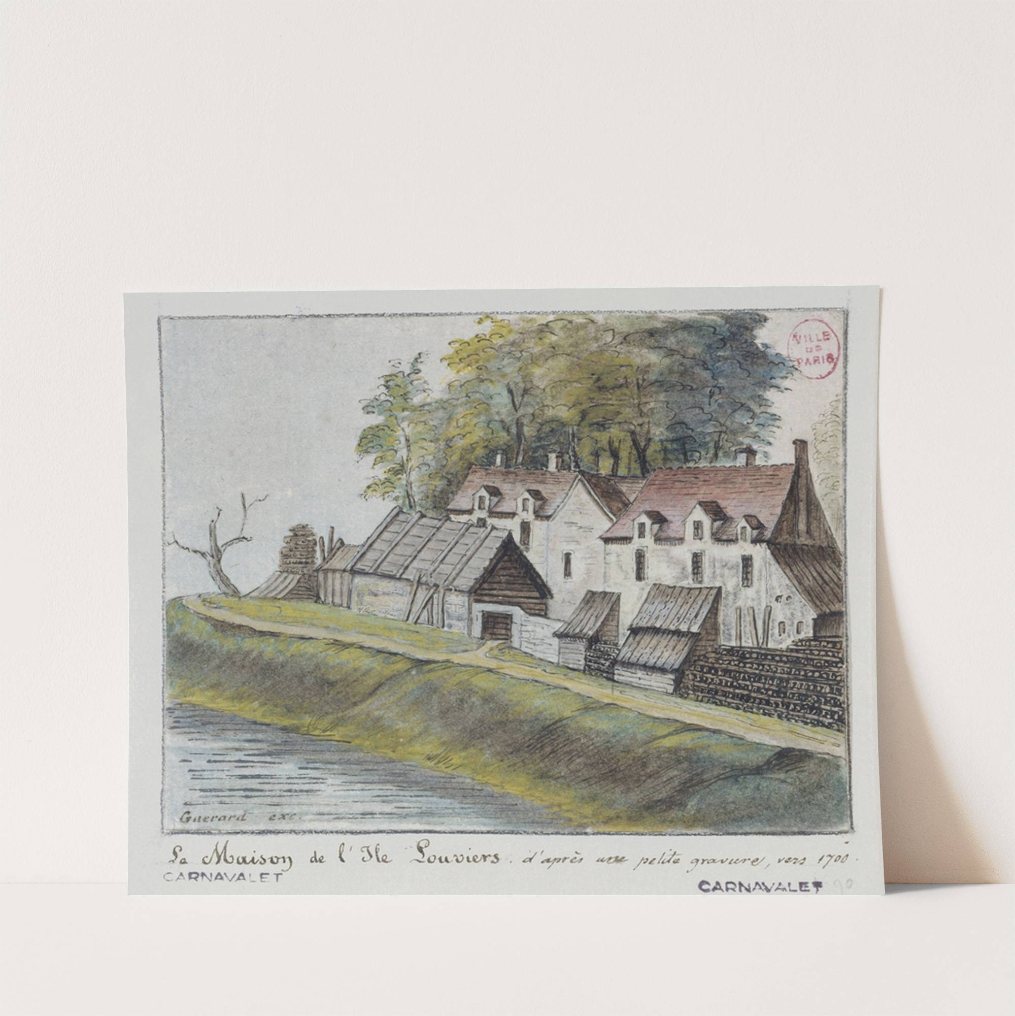 This monochromatic ink drawing by Alfred Bonnardot features "Restes du Collège Cardinal Lemoine, rue Saint-Victor." The architectural style captures the rustic charm of an old European building with a focus on its weathered facades and intricate details. The structure includes...