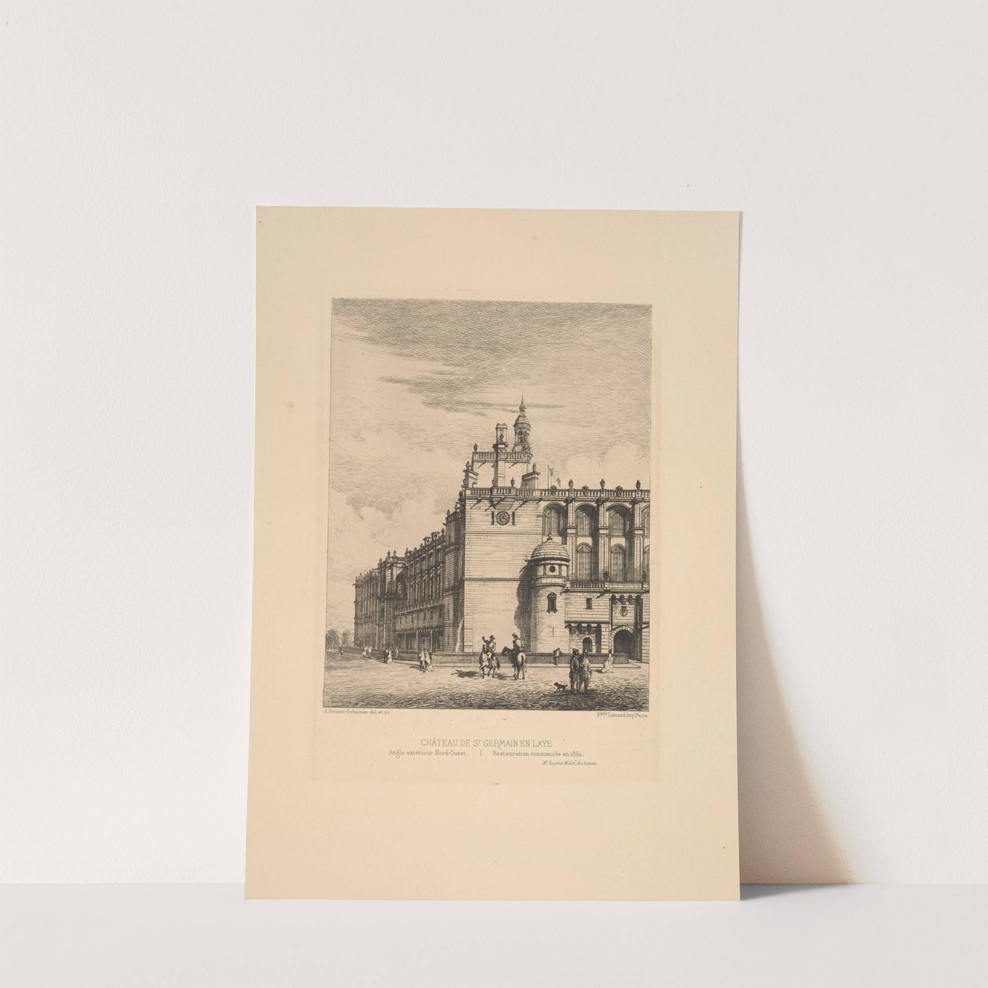 This art print captures "Château de Saint-Germain-en-Laye" from a northwest exterior angle, rendered in intricate black and white line work. The classic engraving style emphasizes the architectural details of the historical building, with a focus on its grandiose façade and...