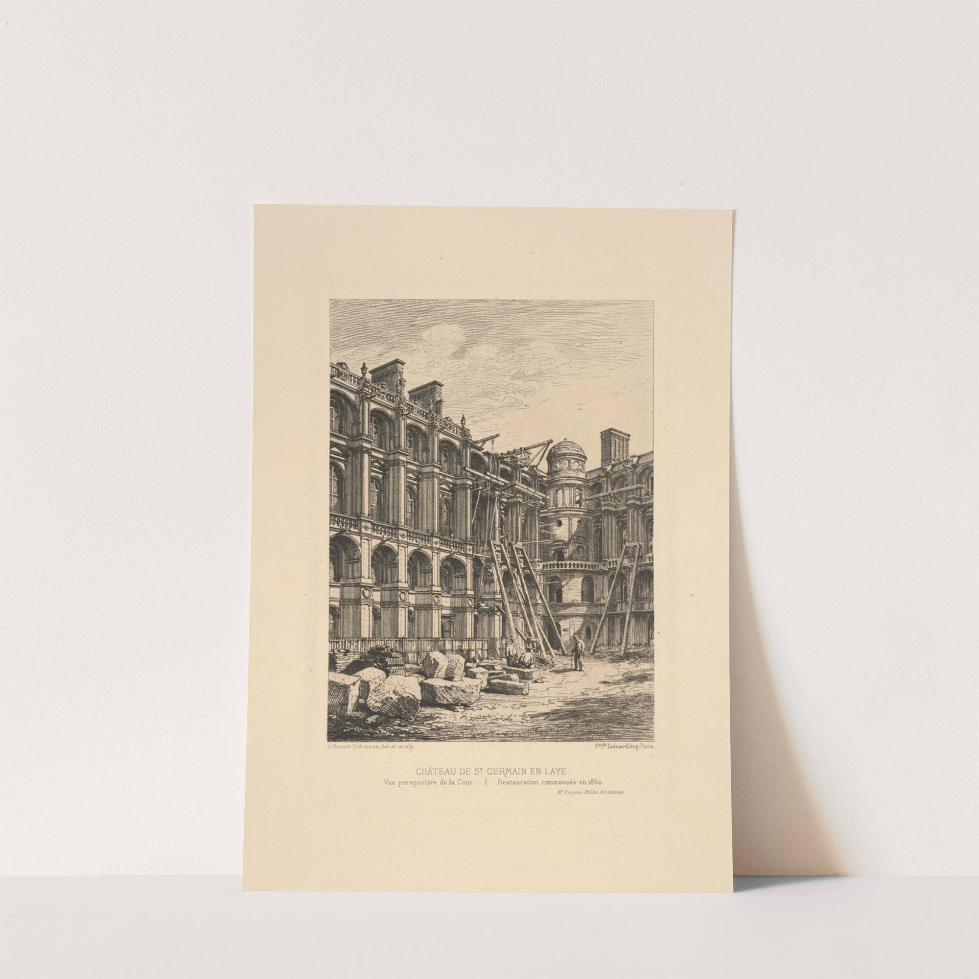 Chateau de St. Germain en Laye. Perspective view of the court. Restoration began in 1862 by Alfred Brunet-Debaines - Wall Art Print