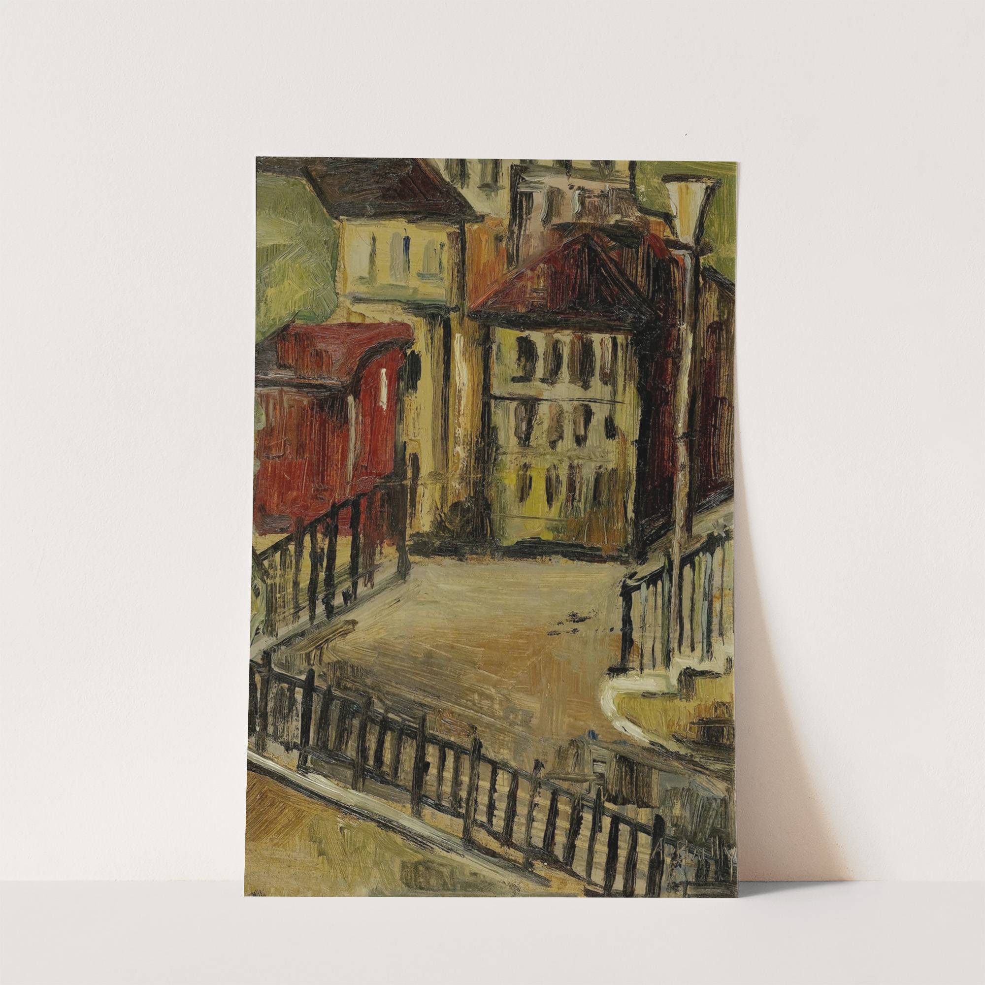 This piece is titled "Paysage urbain" by the artist Alice Bailly. It features an impressionistic view of an urban street scene, rendered with bold, expressive brushstrokes that create a dynamic sense of movement and atmosphere. The color palette includes warm...