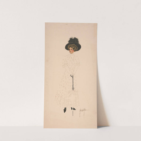 This striking art print features "Woman with Hat and Umbrella" by the talented artist Alice Luella Fidler, dated 1908. The composition showcases a minimalist yet elegant style, capturing an enigmatic portrait of a woman with delicate precision. Her face is...