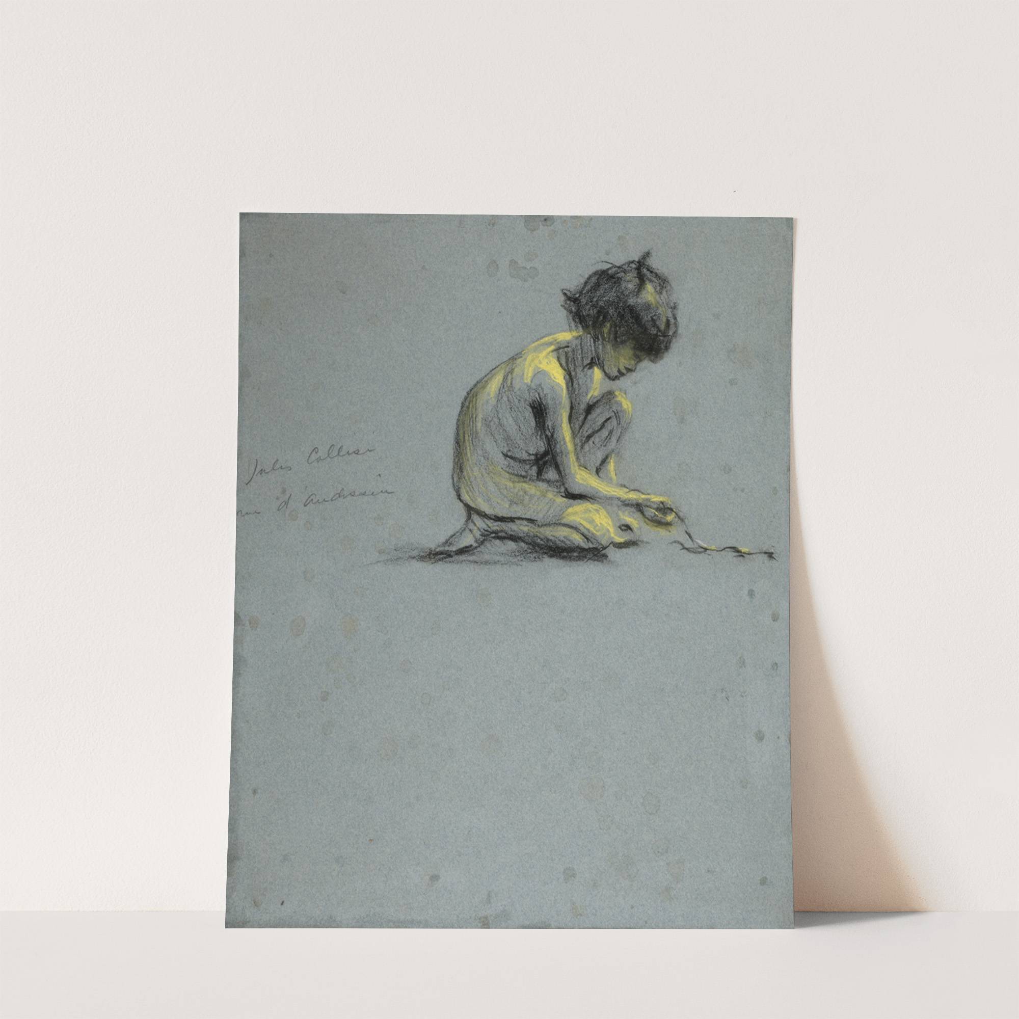 This piece titled "Crouching Boy with Snake" is a captivating drawing by the artist Alice Pike Barney. The art showcases a young boy crouched on the ground, deeply engaged in his task of holding a snake. His body is slightly...