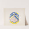 3-D Study for circular box with grid and dotted wavy border in blue, red and green by Winold Reiss - Wall Art Print