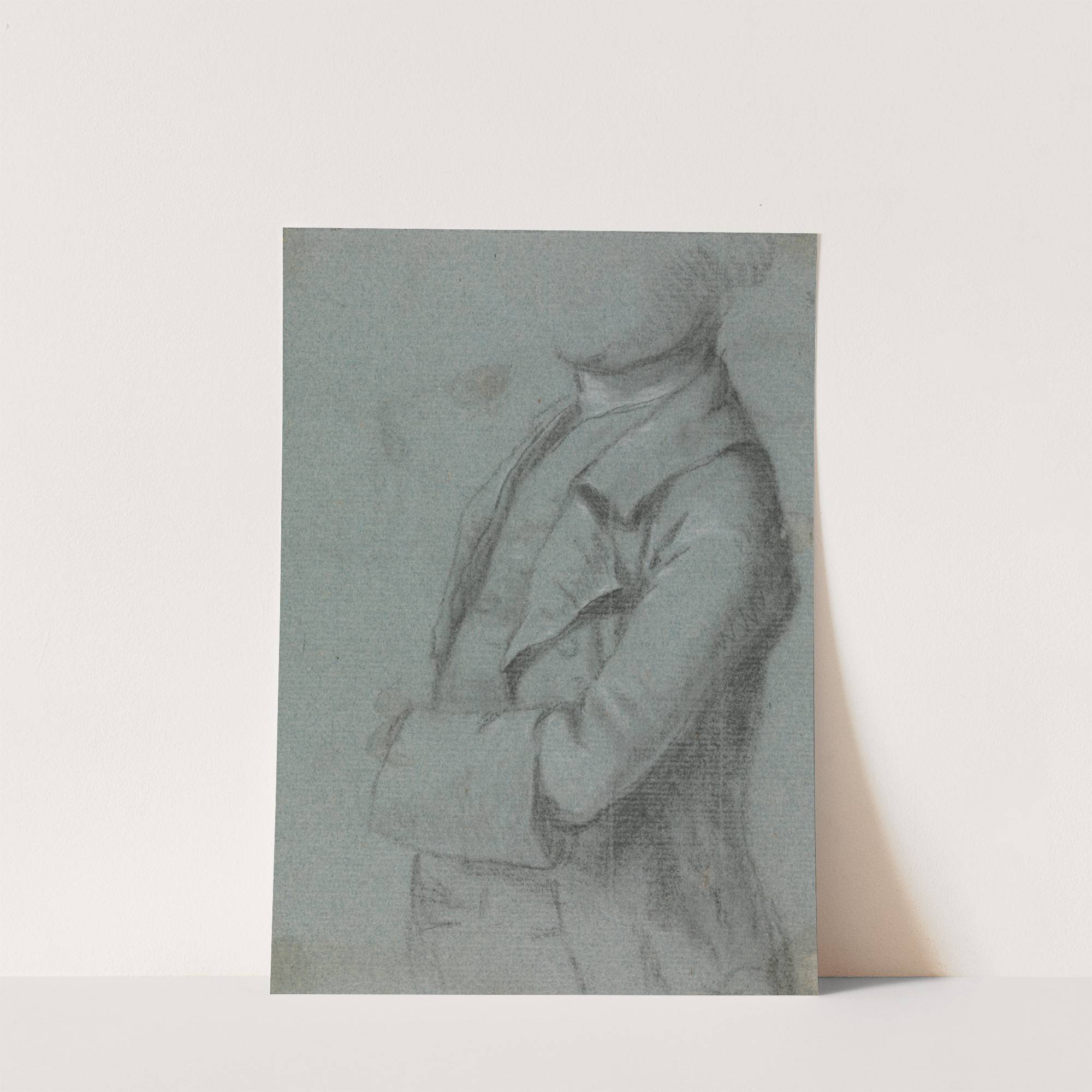 This is a finely detailed pencil drawing titled "Costume Study for a Portrait of a Man" by Allan Ramsay. The image features a male subject with his arms crossed, wearing a formal coat that appears to be made from wool...