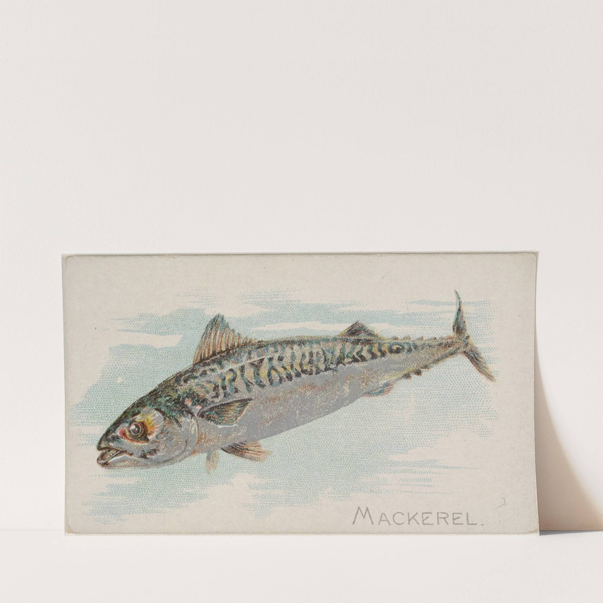 This stunning artwork titled "Mackerel" by Allen & Ginter captures the essence of a mackerel fish with remarkable precision and detail. The illustration features a realistic representation of the fish, showcasing its elongated body, prominently arched dorsal and anal fins,...