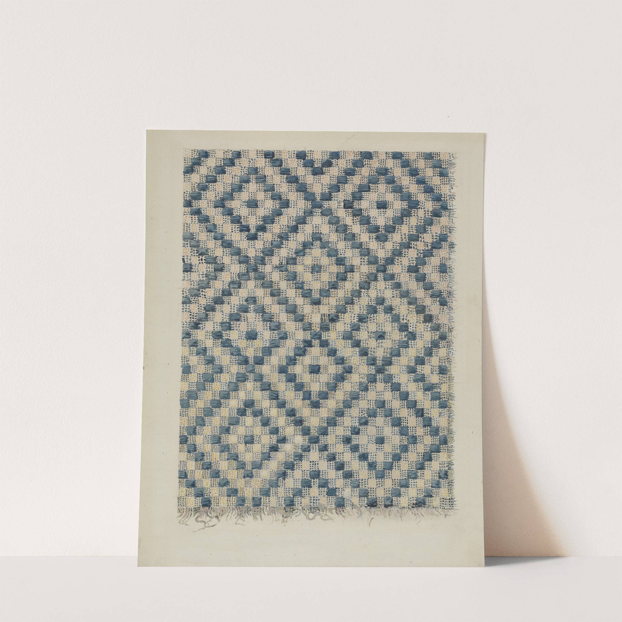 This art print features "Coverlet Fragment" by Alois E. Ulrich, showcasing an intricate and mesmerizing pattern. The design consists of repetitive diamond shapes in varying sizes, creating a dynamic and visually engaging effect. These diamonds are arranged in a grid-like...