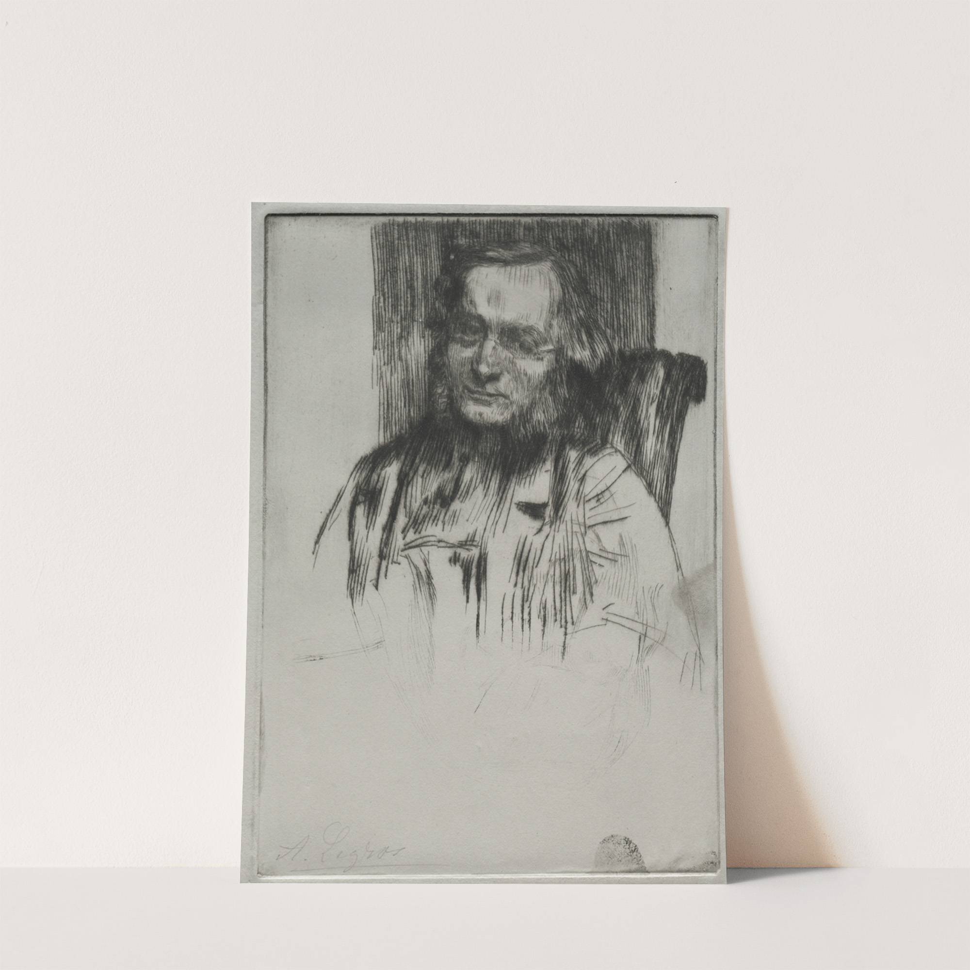 This monochromatic etching features a portrait of an older man with a contemplative expression, captured in fine detail by artist Edwin Edwards (1861). The subject's face is subtly illuminated amidst a dark, textured background that emphasizes the depth and shading...