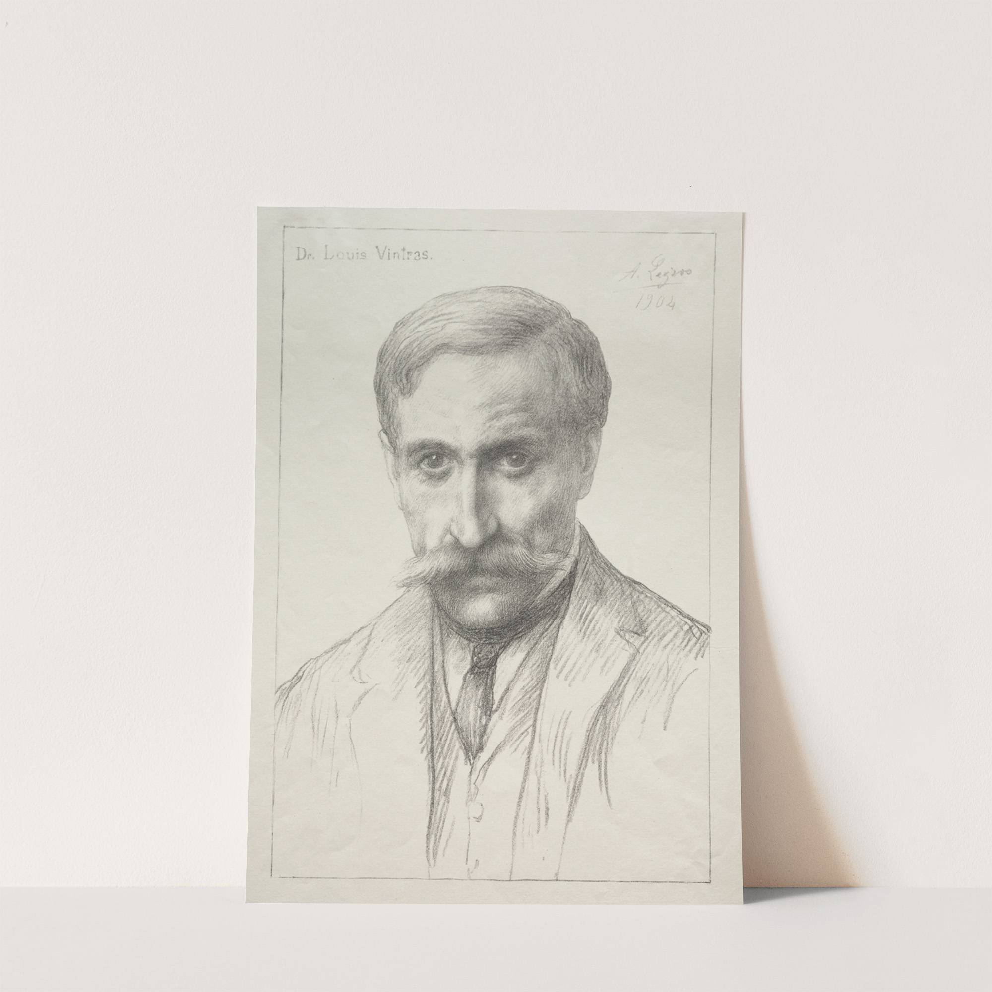 This is a meticulously detailed black-and-white pencil drawing of Dr. Louis Vierne by the renowned artist Alphonse Legros. The portrait captures Dr. Vierne's dignified presence with precision, highlighting his calm yet focused expression. His hair is neatly combed and slightly...